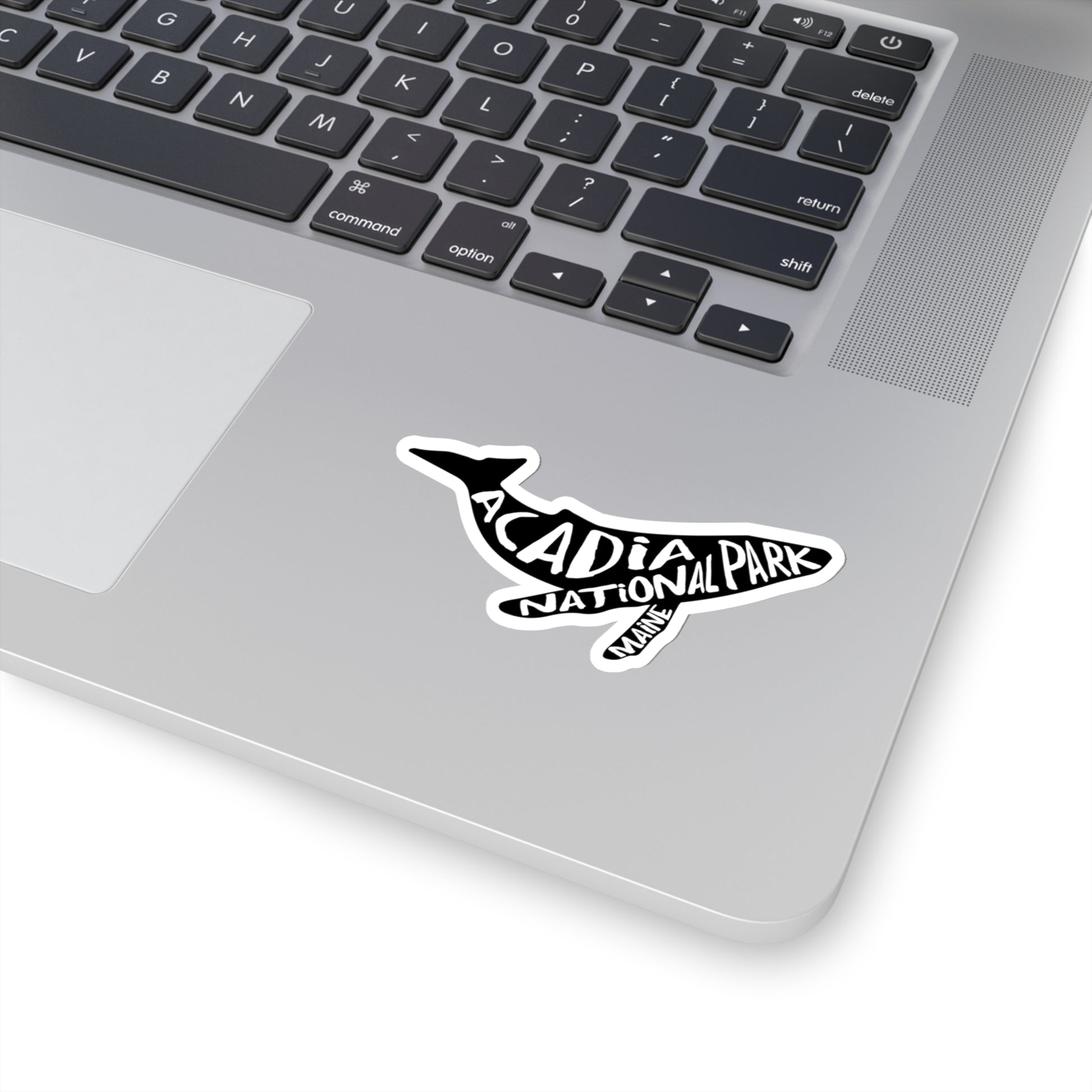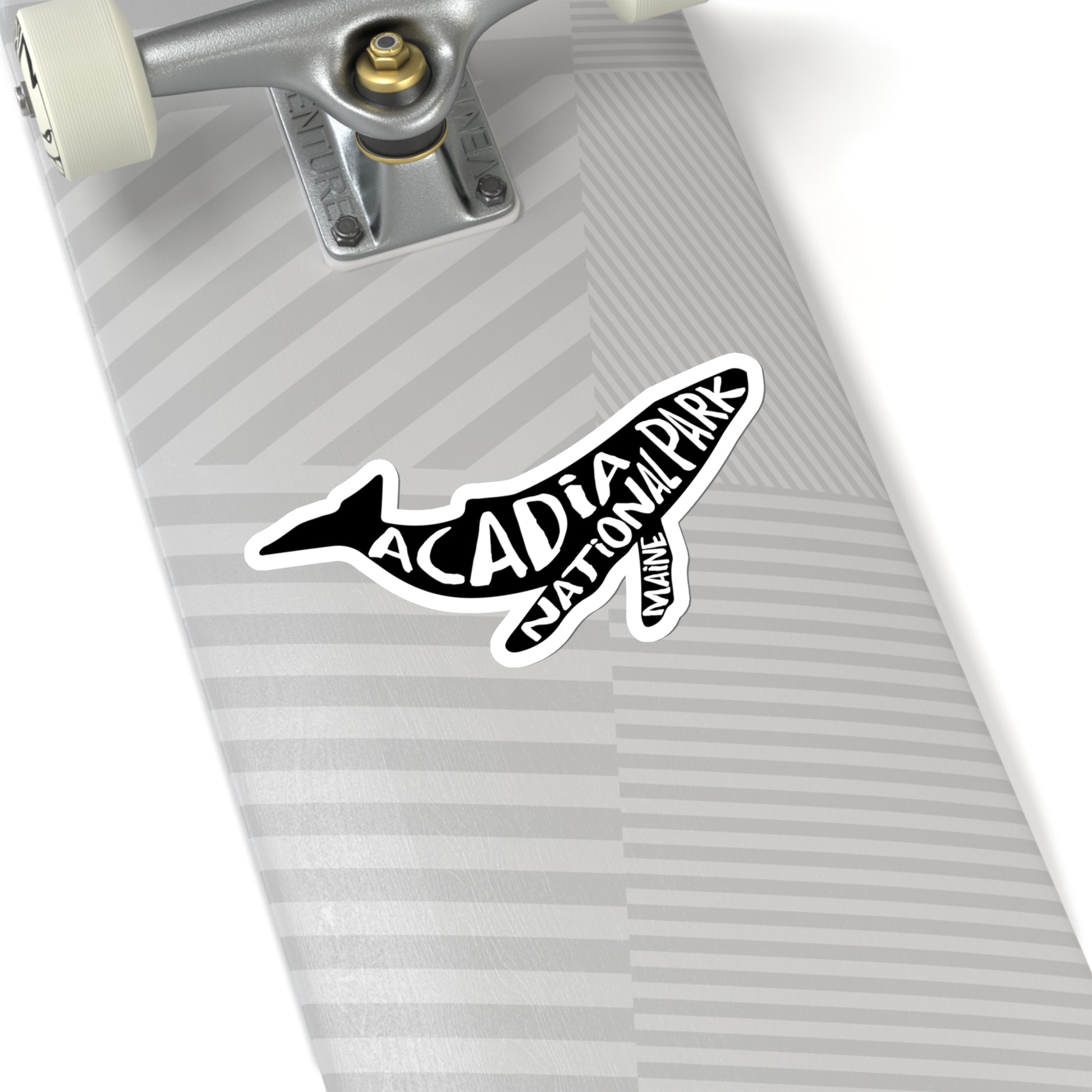 Acadia National Park is a stunning place located in Maine. It's home to rounded mountains, beautiful beaches, and a variety of wildlife, including humpback whales. This sticker features a black silhouette of a humpback whale with the name of the park stenciled on top in chunky white lettering. It's the perfect way to show your love for Acadia National Park or to add a touch of nature to your home or office.