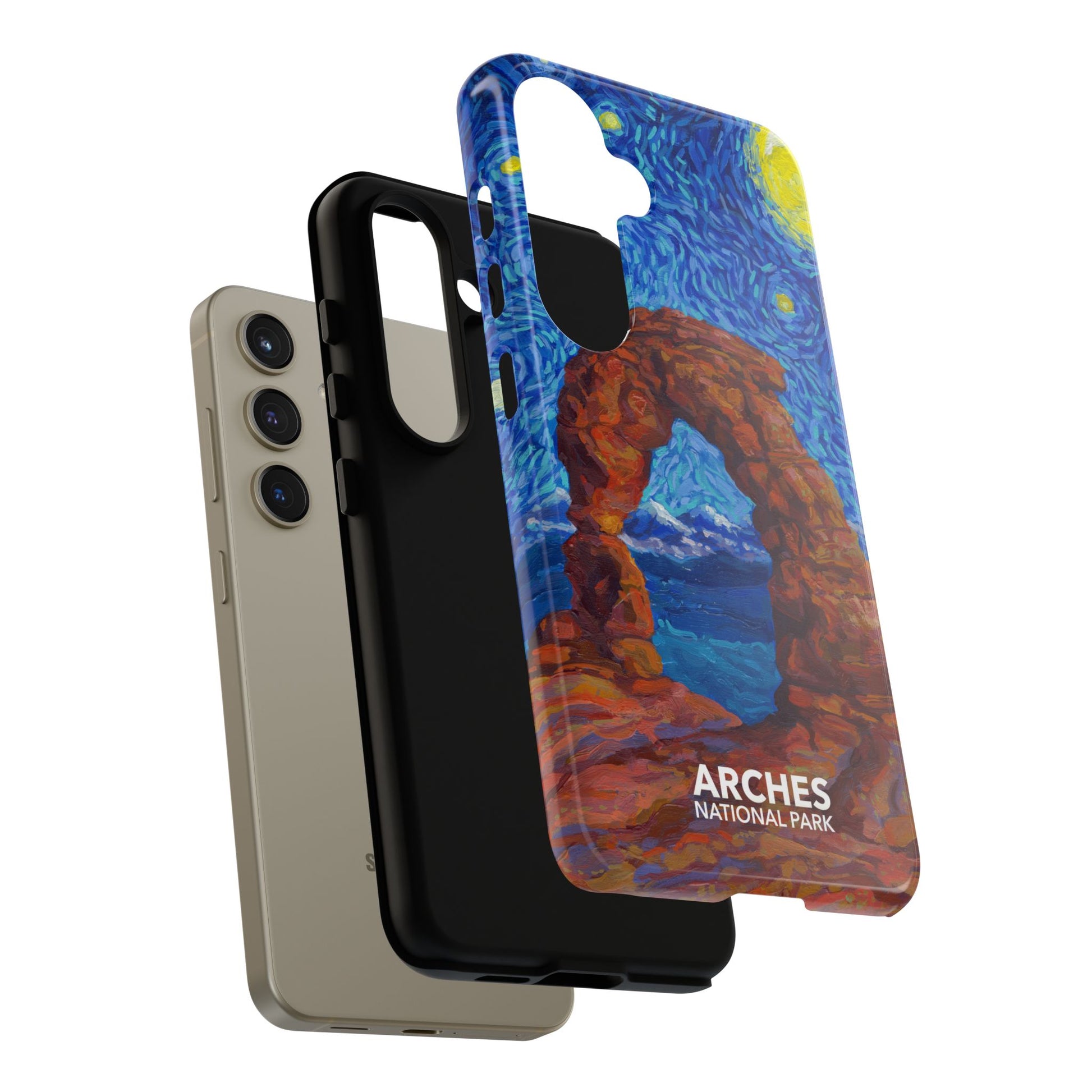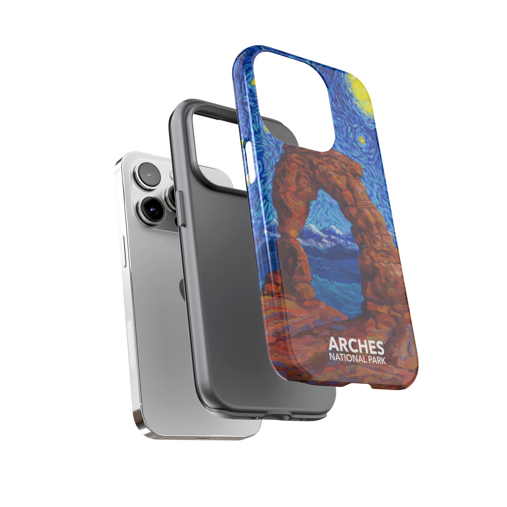Inspired by national parks and the iconic Vincent van Gogh painting, this Arches National Park Phone Case is perfect for anyone who loves the national parks. It features a double-layer design that provides excellent protection for your device without adding excessive bulkiness. Choose your phone from the drop-down list - including the iPhone 17, iPhone 17 Pro, iPhone 17 Pro Max, iPhone Air, as well as Google Pixel and Samsung models.