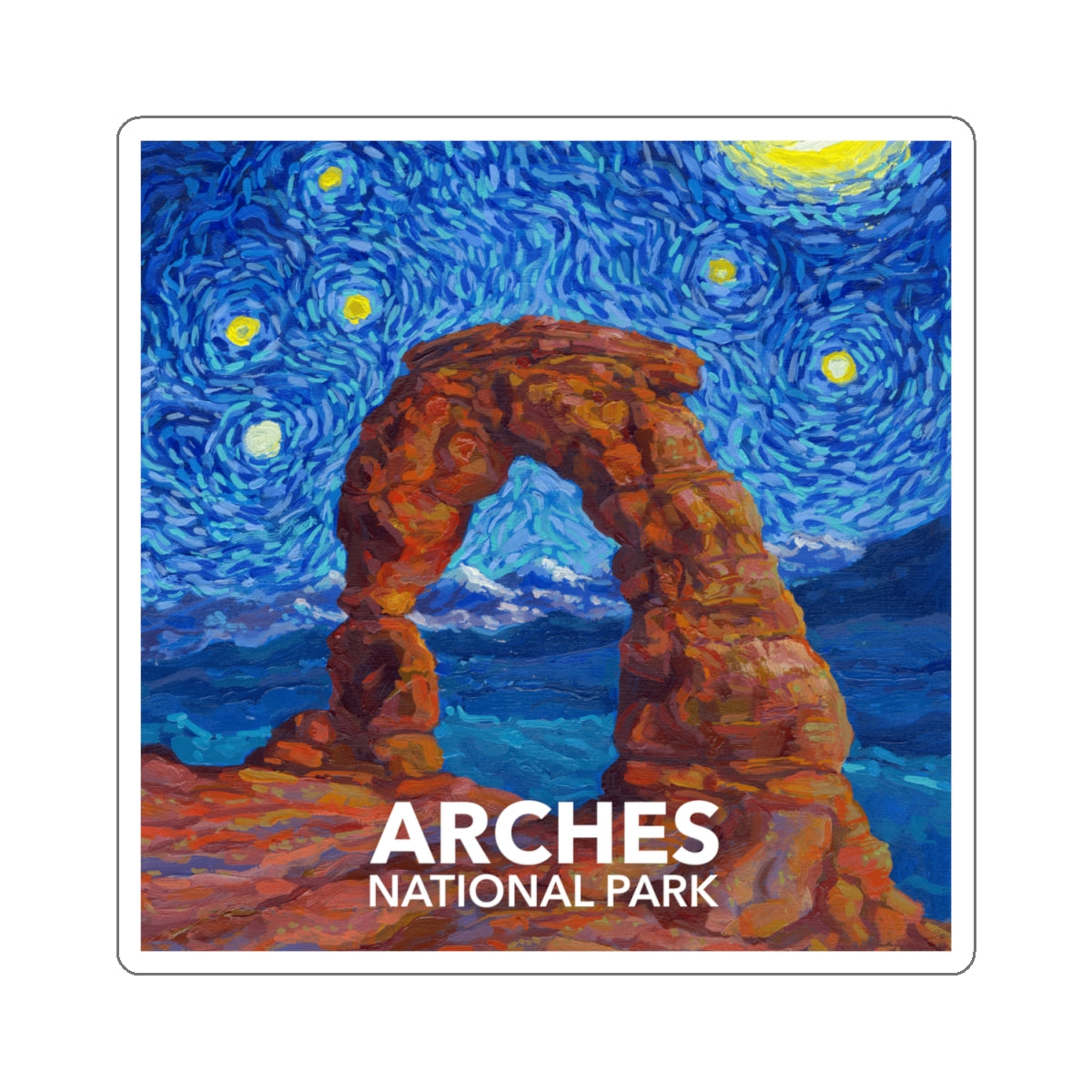 Celebrate the most famous natural arch in North America in the style of Vincent van Gogh in the style of "Starry Night" with this Arches National Park sticker. The design is exclusive to National Parks Partnership so you won't find these stickers anywhere else.