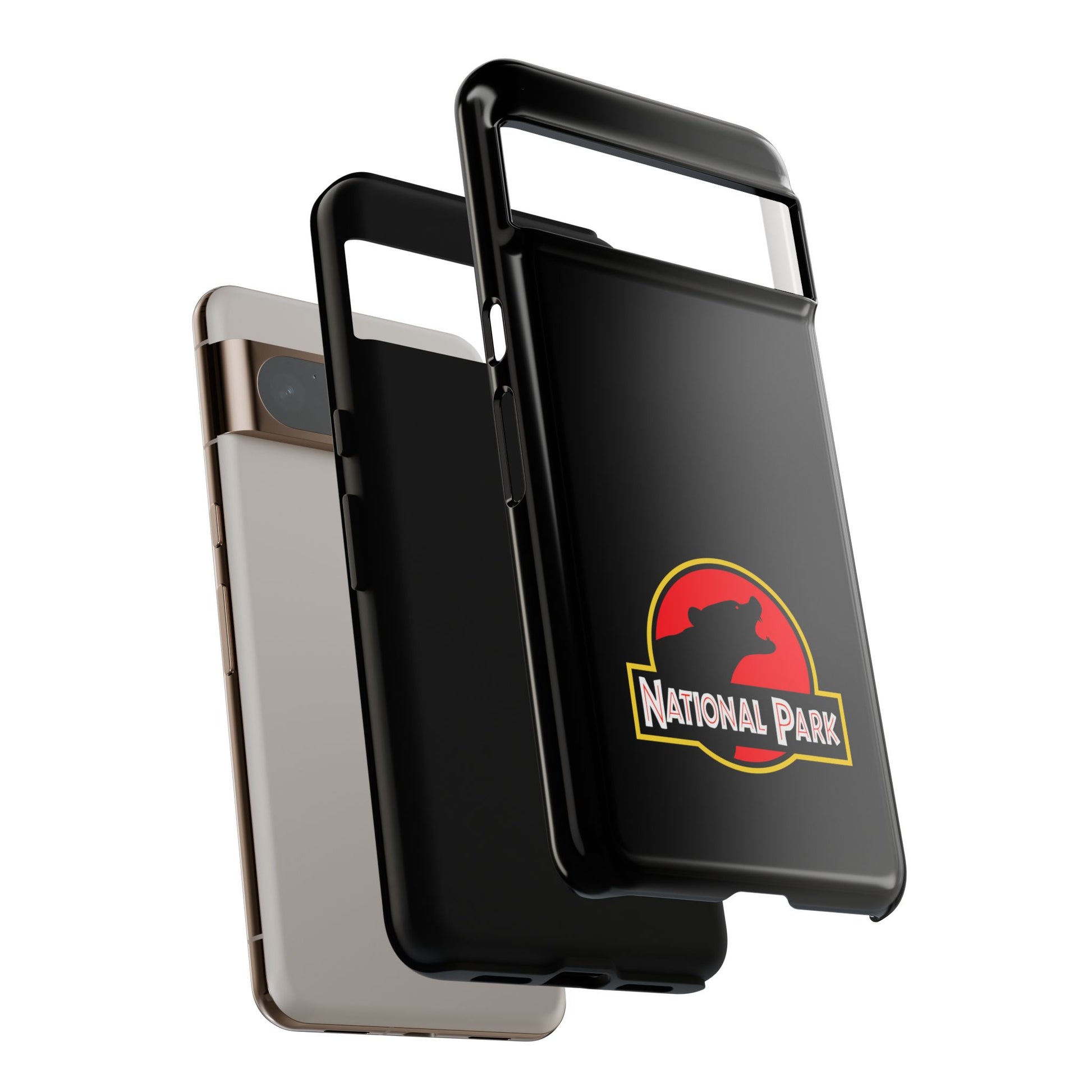 This phone case features a parody of the popular 90s dinosaur mega-franchise logo - but with a national park twist! Our National Park Phone Cases provides great protection for all the latest models of iPhone. Just select your desired model from the drop-down list. This phone case is available or iPhone 17, iPhone 17 Pro, iPhone 17 Pro Max, iPhone Air as well as the most recent models of Samsung Galaxy and Google Pixel.