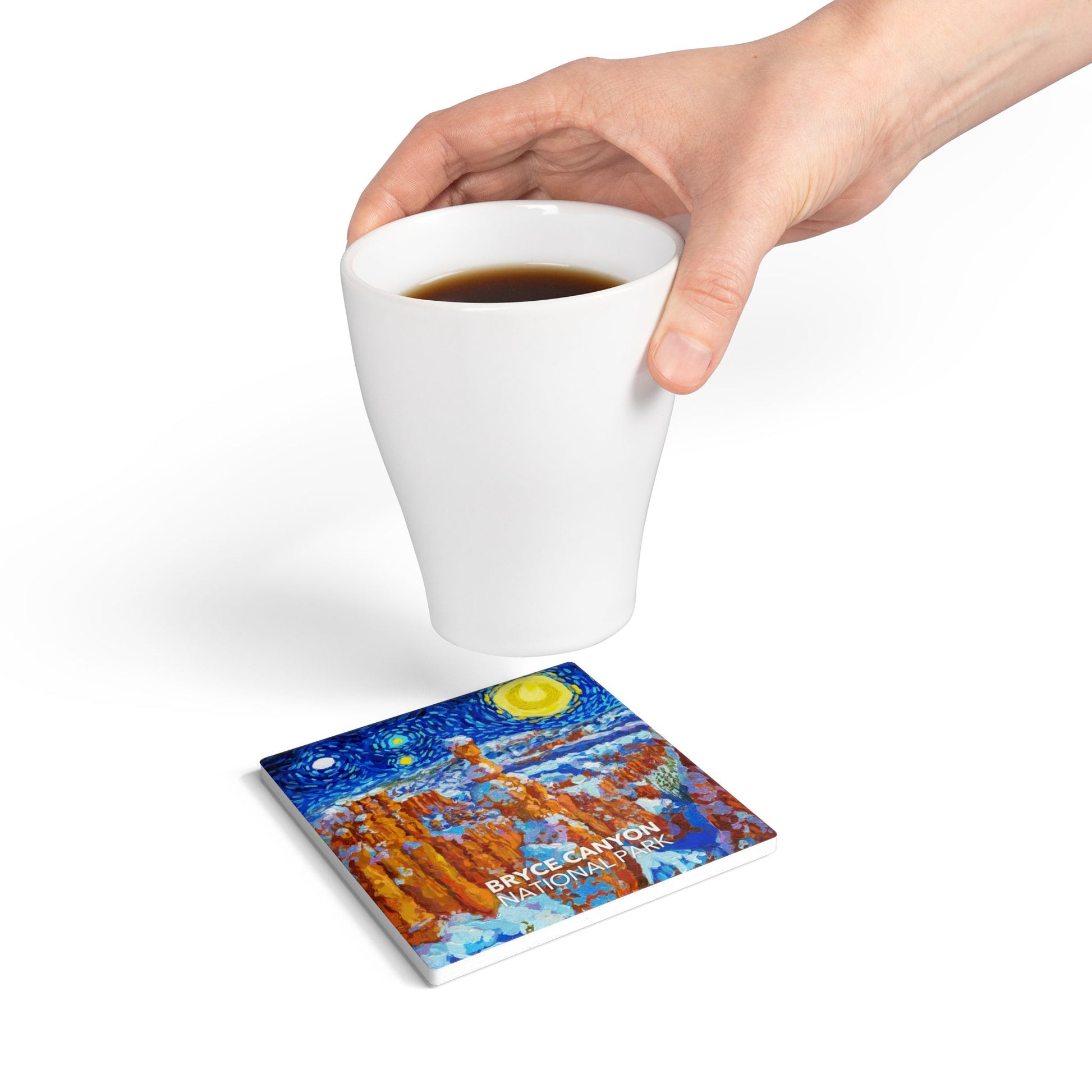 Share your love for the national parks with this ceramic Bryce Canyon National Park Coaster. Inspired by Vincent van Gogh's iconic "The Starry Night", this design is exclusive to National Parks Collective. Our printing process ensures the most vibrant colors and highest detail. Every purchase helps support the national parks.