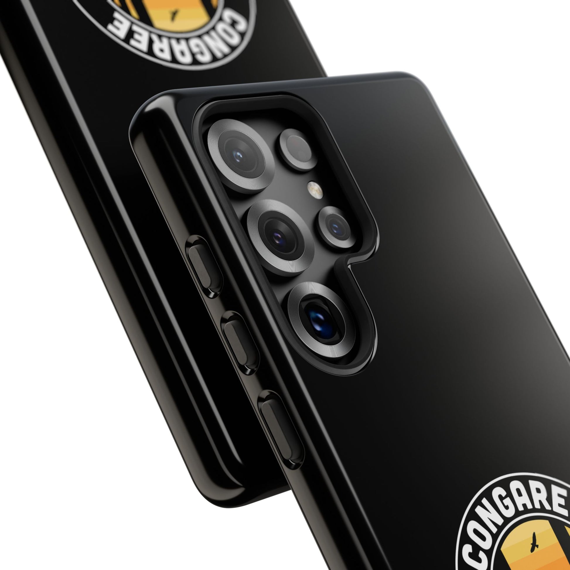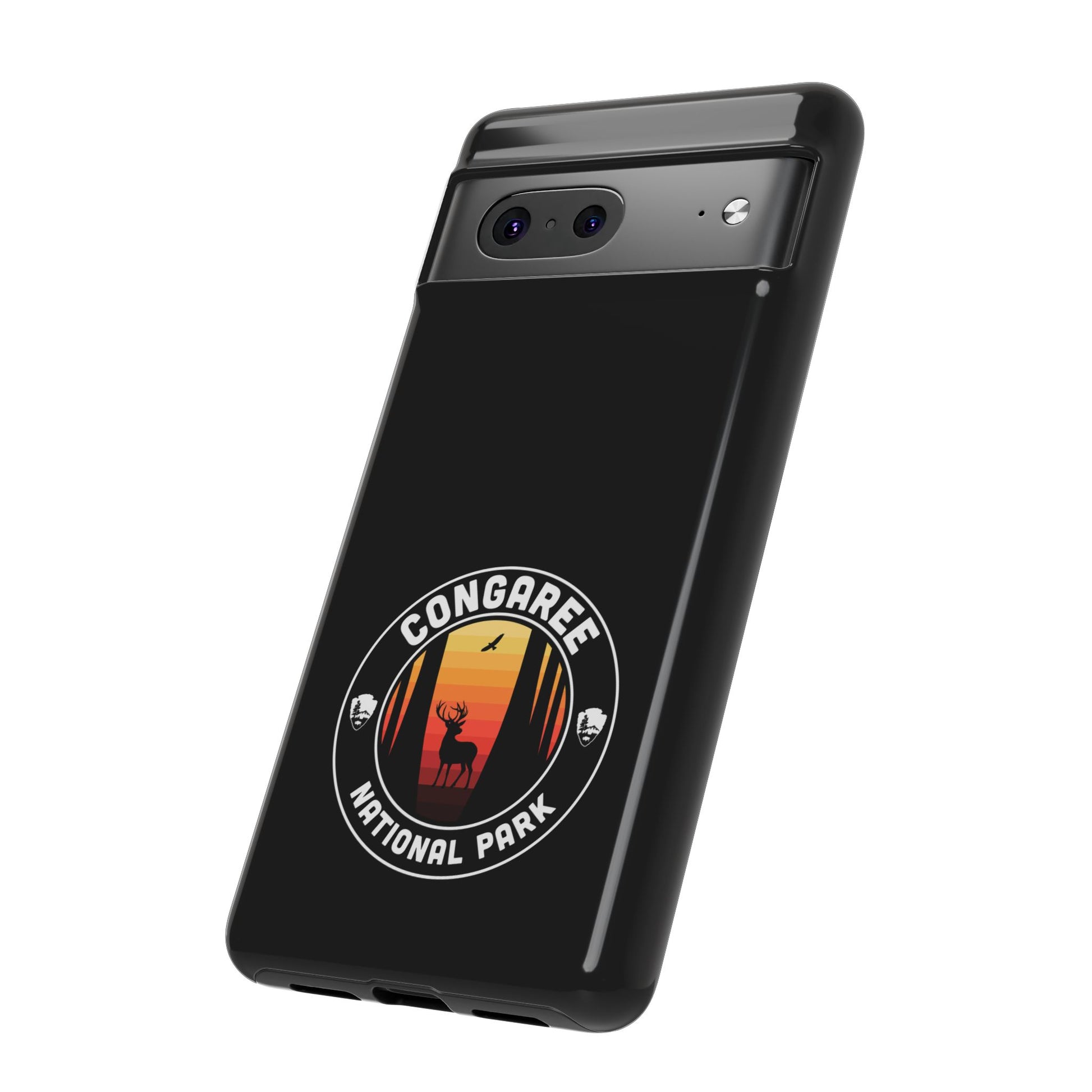 The Congaree phone case with the round emblem design is beautiful and offers great protection for my phone. I'm very happy with it.