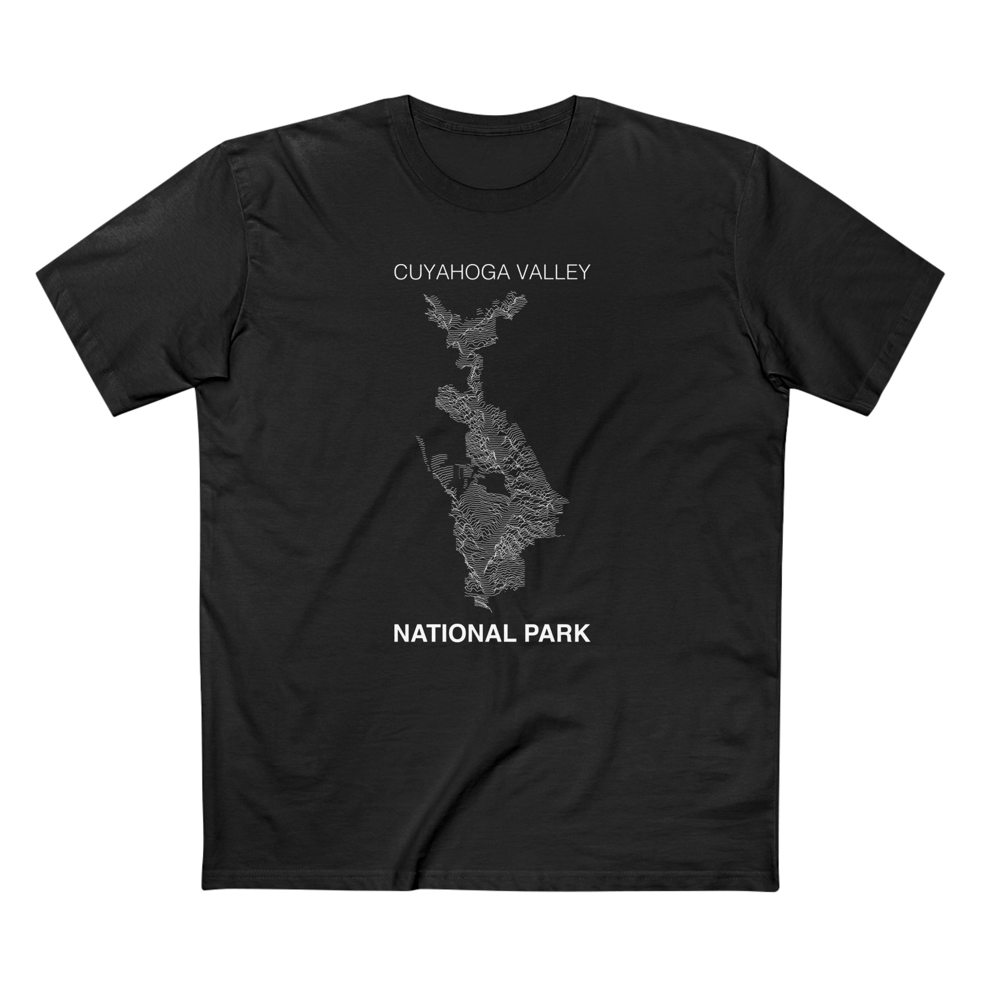 To create this design we took satellite elevation data of Cuyahoga Valley National Park, extracted transects of that data and then ran the data through a custom-written computer script. The result is a unique representation of the national park that you will not find anywhere else. We use a high-precision printing technique to ensure that all of the fine lines are retained on the shirts and they look fantastic! All shirts are designed and printed in the USA.