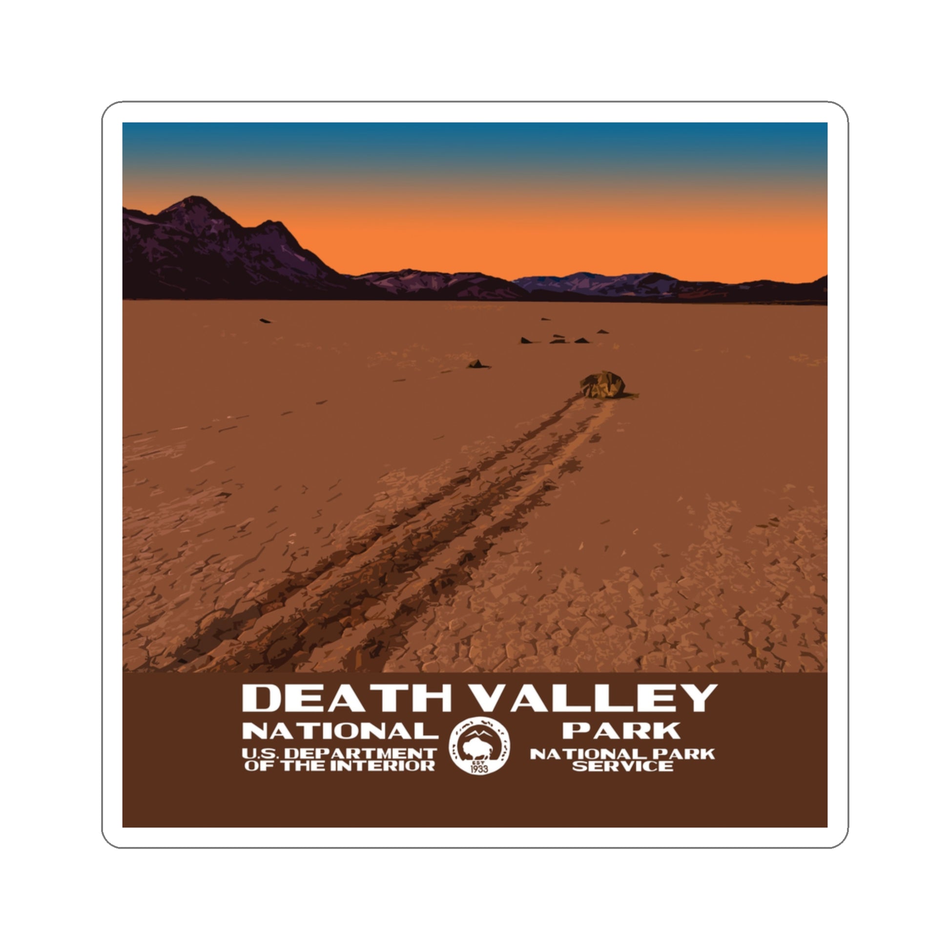 Racetrack Playa is the place where boulders seem to race each other while no one is watching. The scars in the earth have only recently been explained, but they still are a surreal phenomenon. Celebrate this unique location with a Racetrack Playa Death Valley National Park sticker.