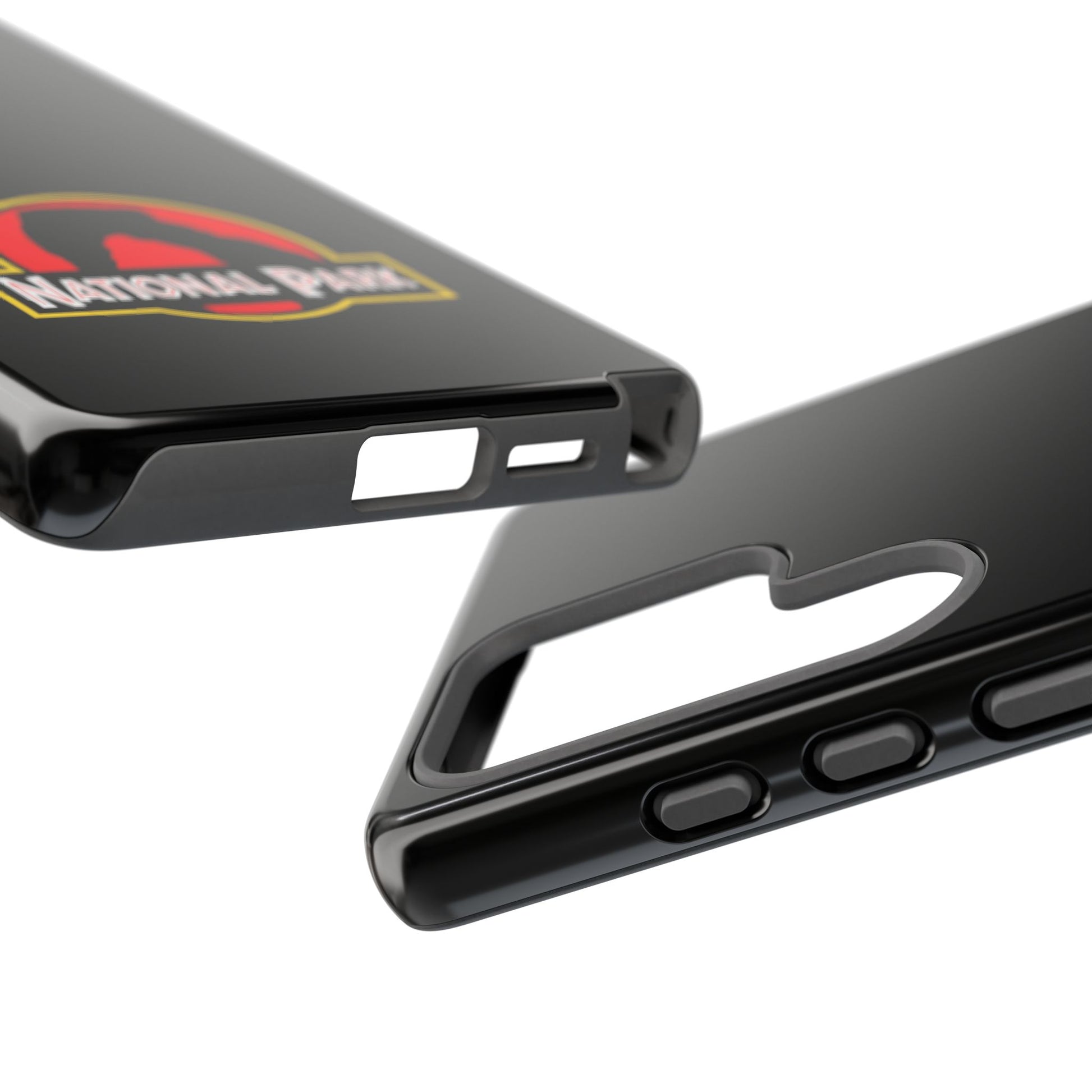 This phone case features a parody of the popular 90s dinosaur mega-franchise logo - but with a national park twist! Our National Park Phone Cases provides great protection for all the latest models of iPhone. Just select your desired model from the drop-down list. This phone case is available or iPhone 17, iPhone 17 Pro, iPhone 17 Pro Max, iPhone Air as well as the most recent models of Samsung Galaxy and Google Pixel.