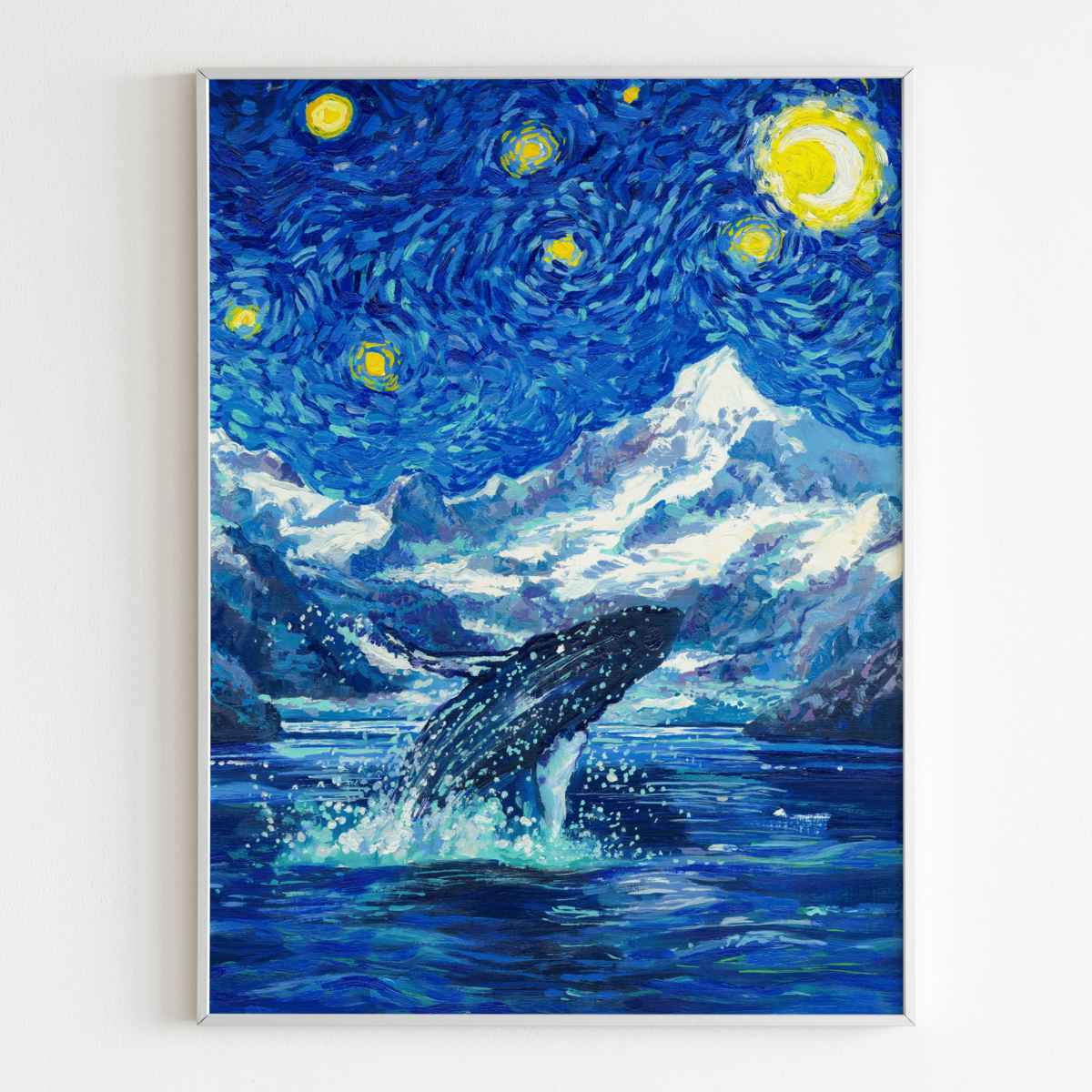 This Glacier Bay National Park Poster has to be seen to be believed! We took the highest resolution scans of our hand-painted Starry Night Glacier Bay National Park painting and printed it on incredible 285gsm textured paper. When combined with the archival inks, the finished product is almost indistinguishable from the original painting. This is the ultimate version of our Starry Night series.