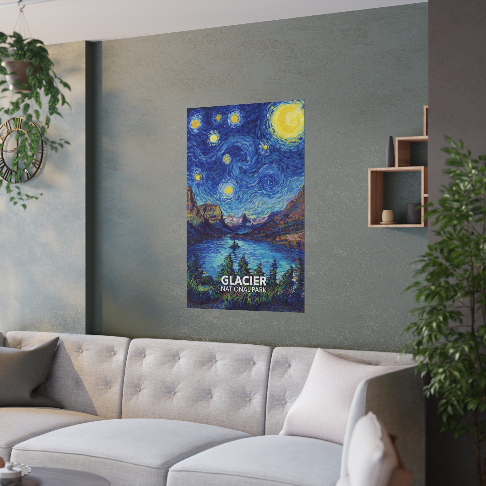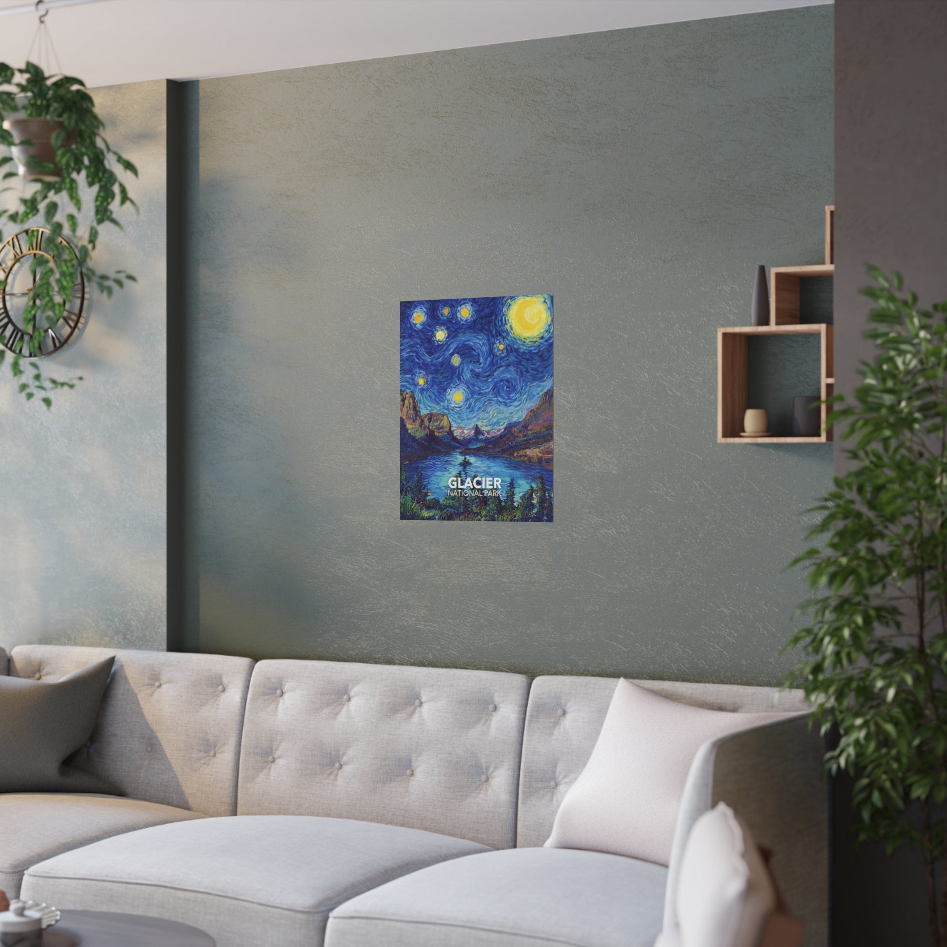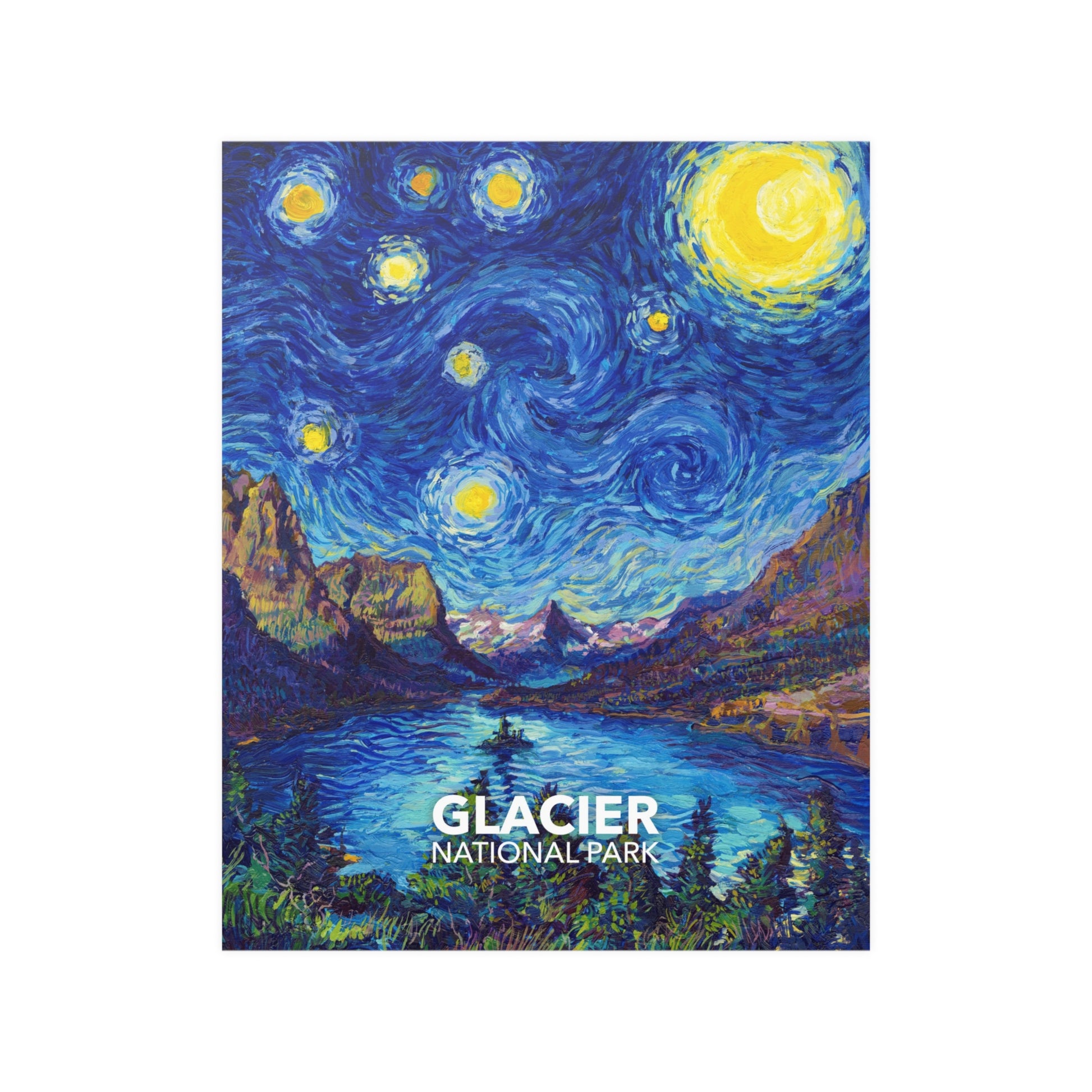 This Glacier National Park captures the spirit of the park. It is designed in the style of "The Starry Night" by Vincent Van Gogh. The large 24"x36" size is sure to be a conversation starter, while the 16"x20" looks great and is easy to frame. This design is exclusive to National Parks Partnership so you won't find it anywhere else!