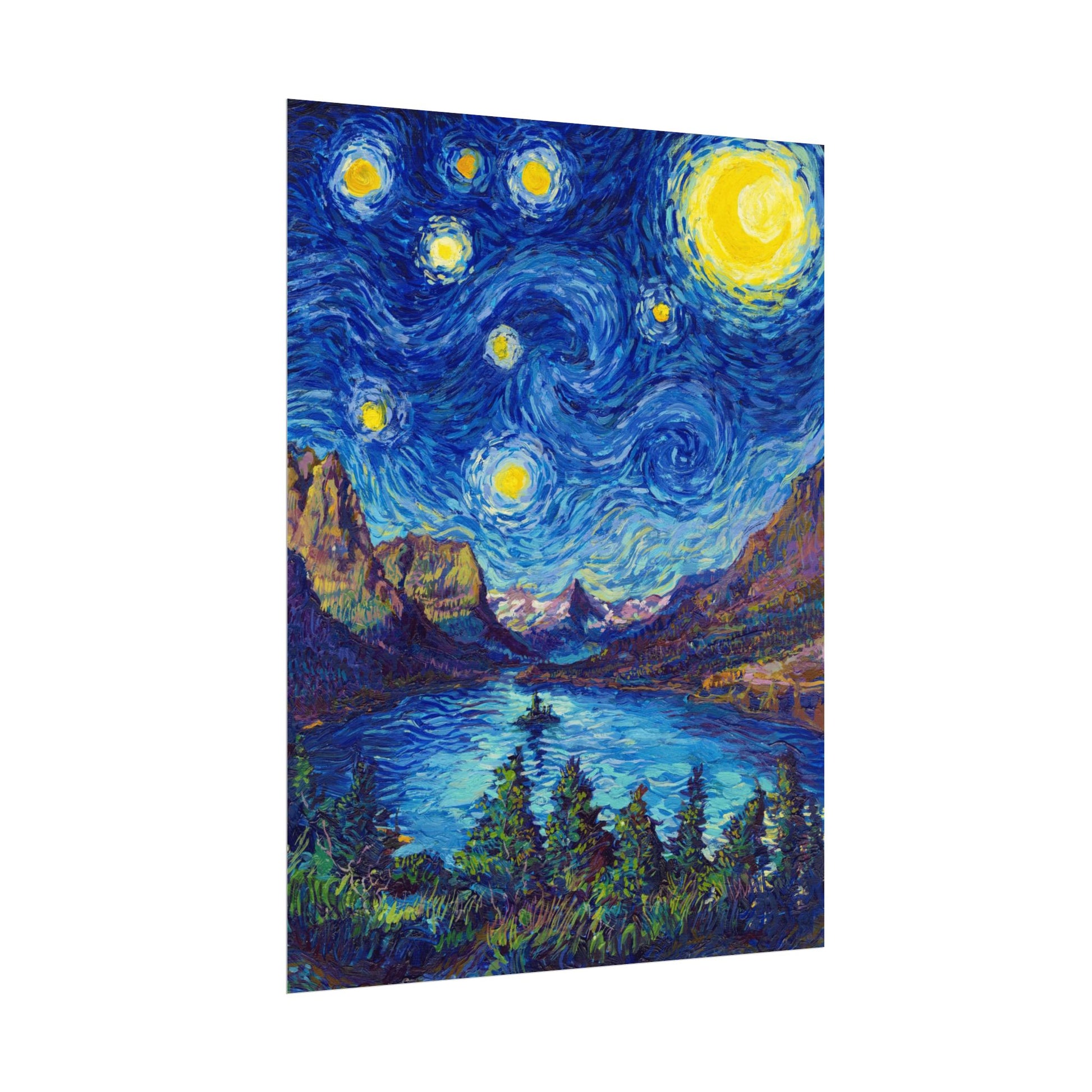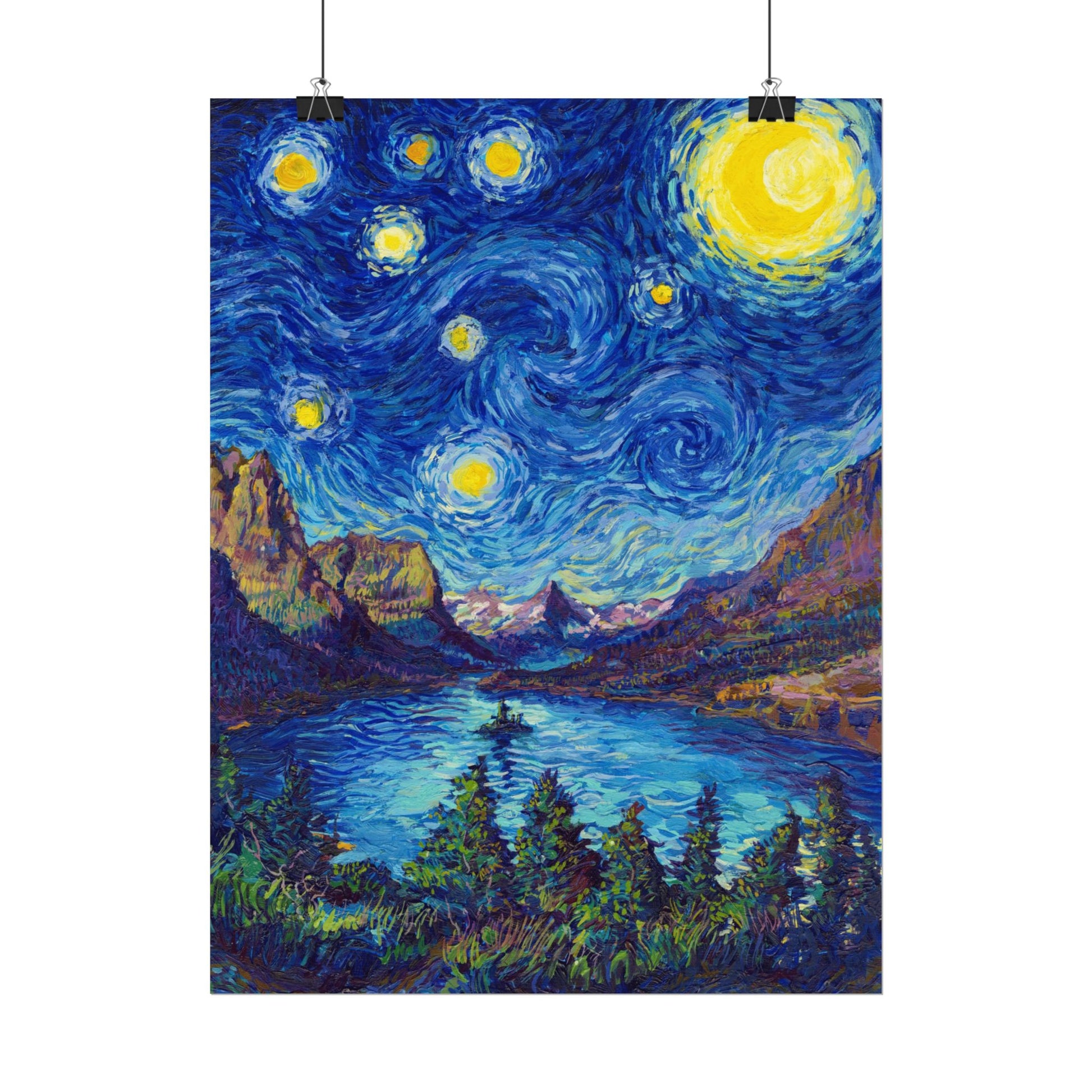 Glacier National Park Starry Night Poster - Premium Textured Paper