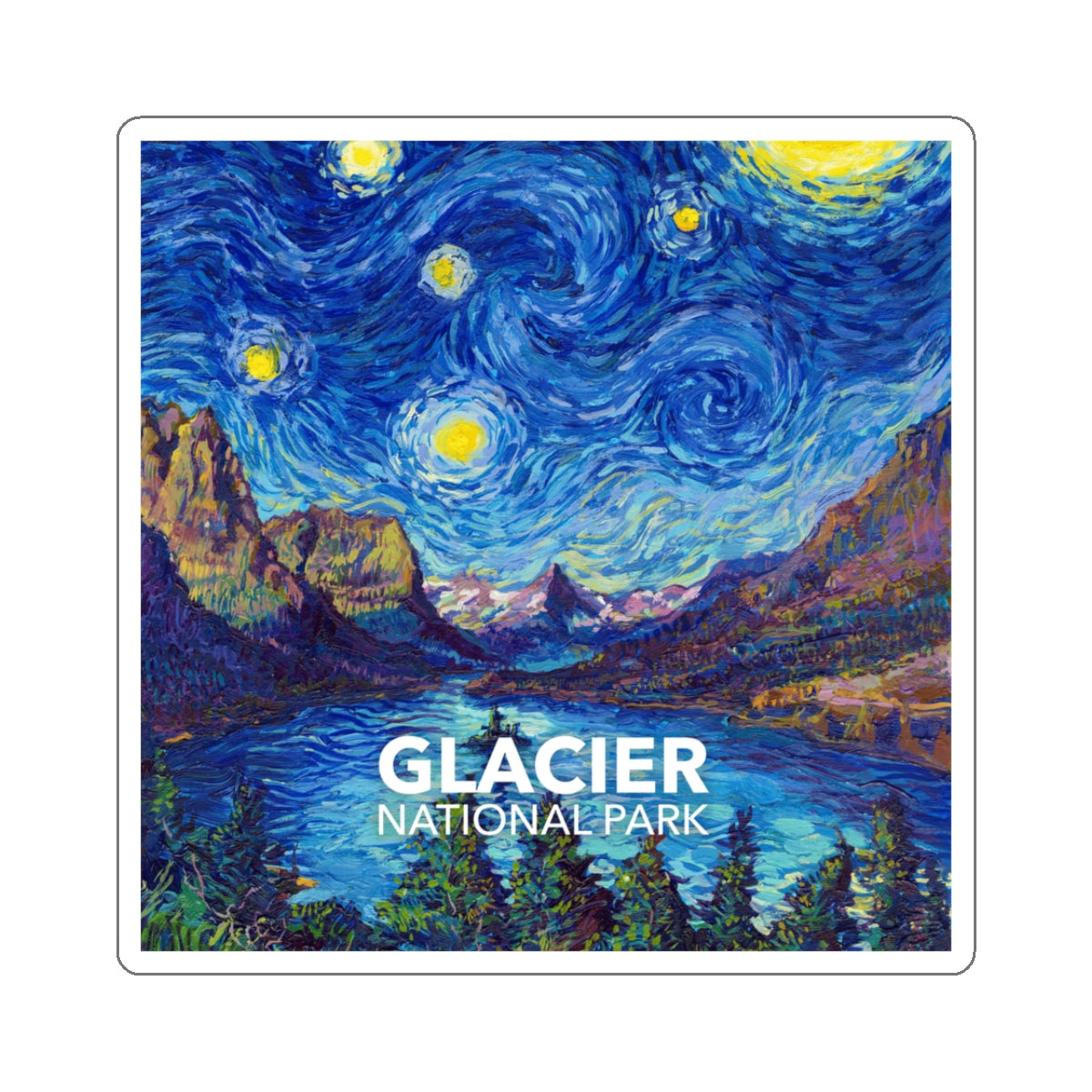Celebrate the Crown of the Continent and Vincent van Gogh in the style of "Starry Night" with this Glacier National Park sticker. The design is exclusive to National Parks Partnership so you won't find these stickers anywhere else.