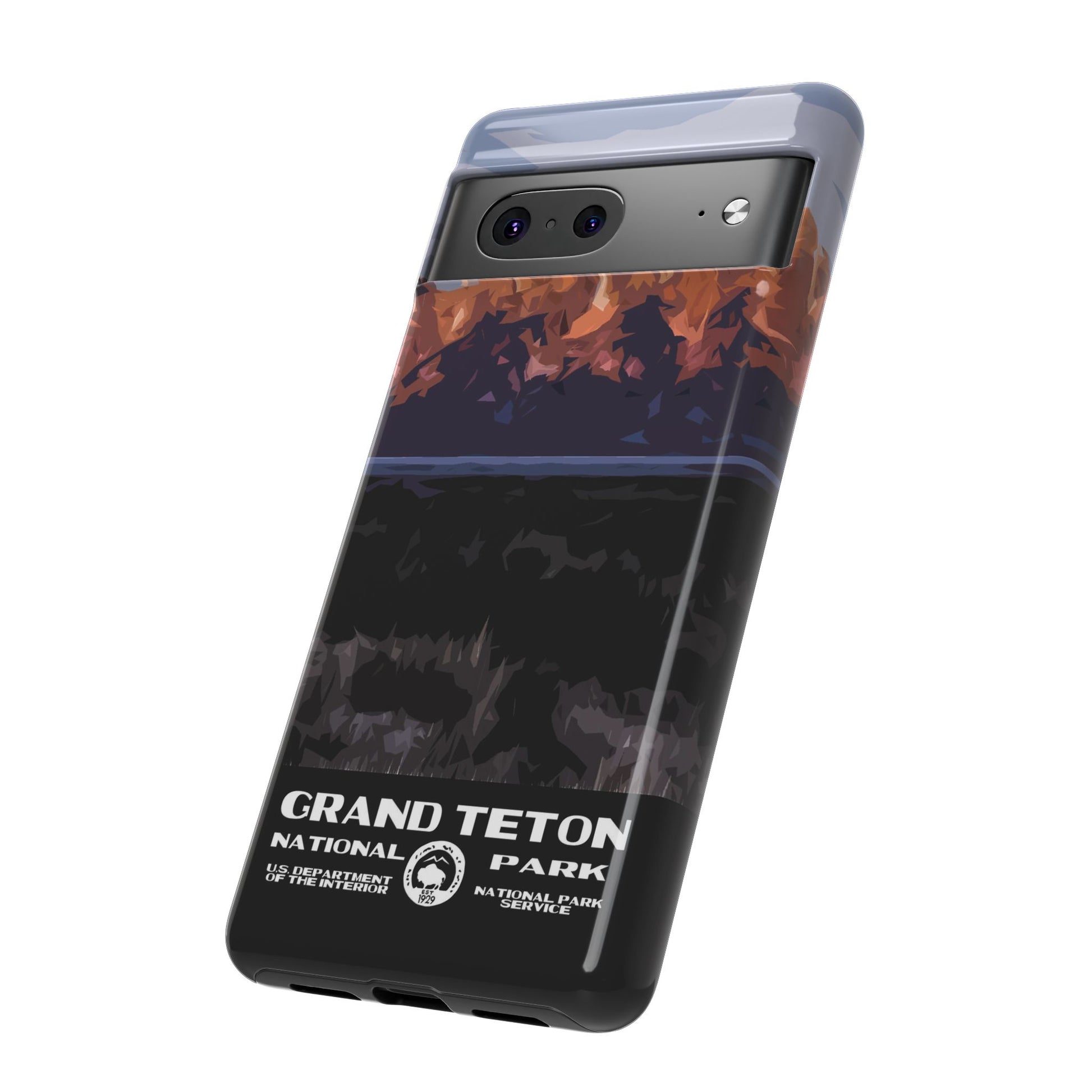 Inspired by the iconic WPA travel posters of the 1930s, which have become symbols of America's national parks, this Grand Teton National Park Phone Case is perfect for anyone who loves the great outdoors. It features a double-layer design that provides excellent protection for your device without adding excessive bulkiness. Choose your phone from the list - including the iPhone 17, iPhone 17 Pro, iPhone 17 Pro Max, iPhone Air, as well as Google Pixel and Samsung models. Every sale helps support national parks. Learn more on our Giving Back page.