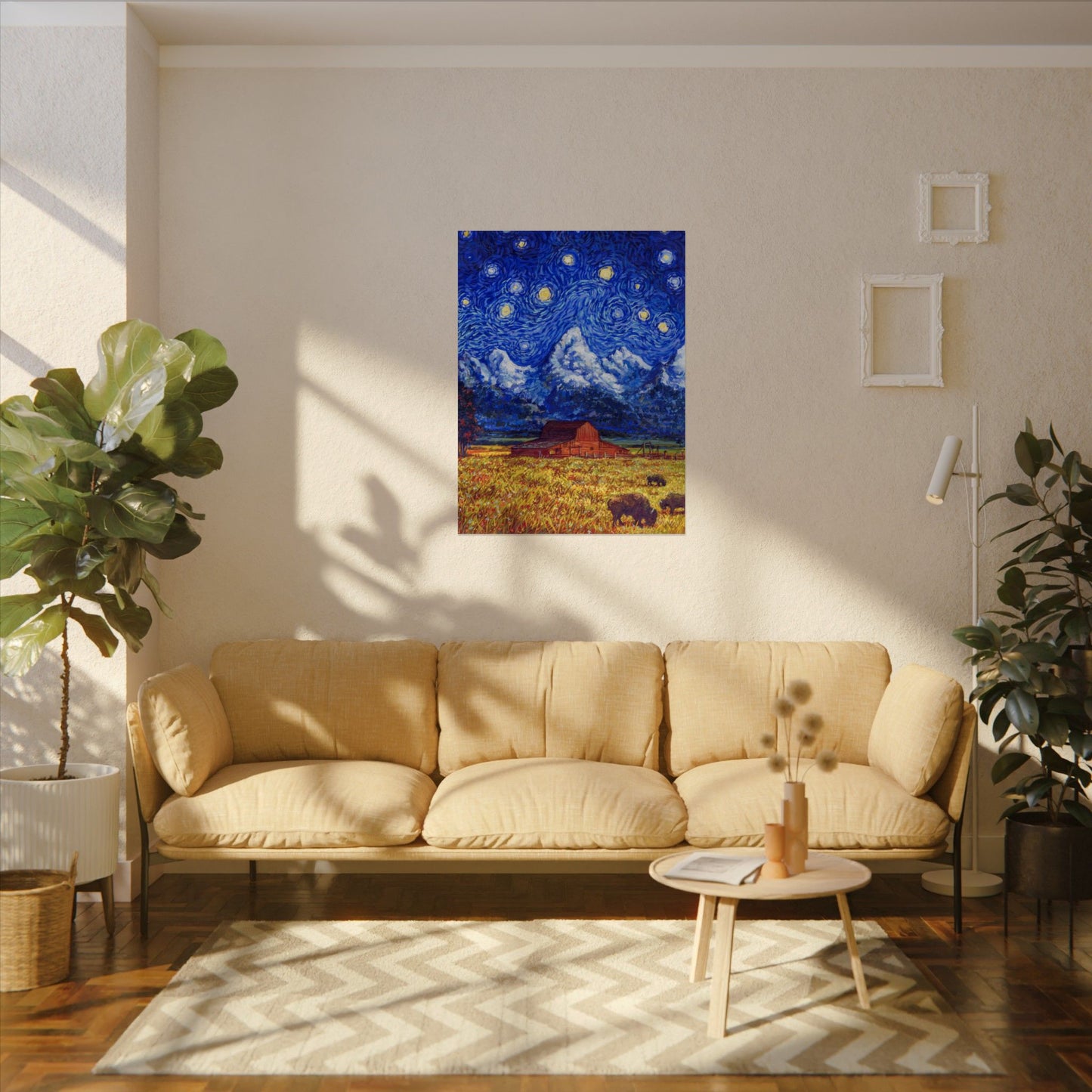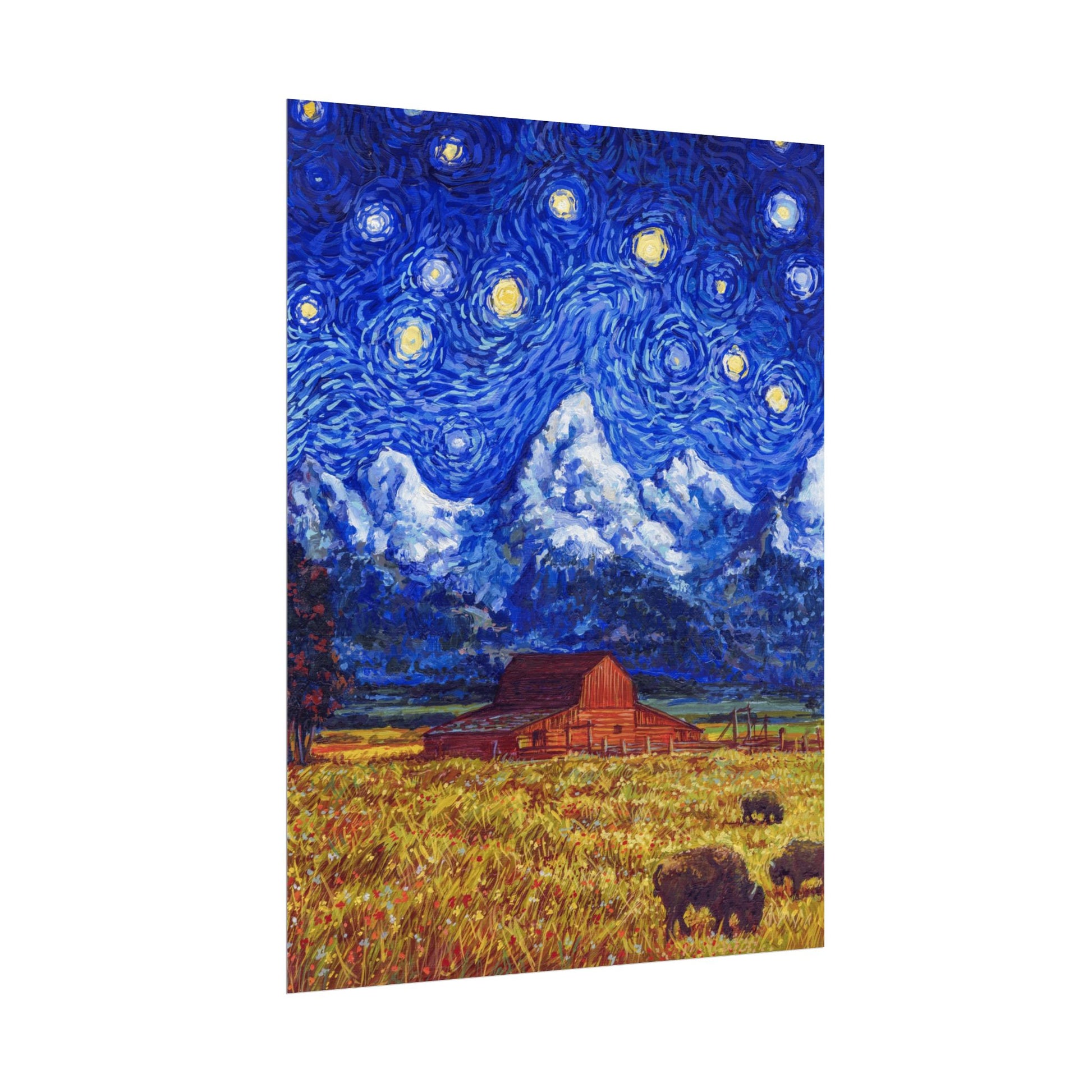 Grand Teton National Park Starry Night Poster - Premium Textured Paper