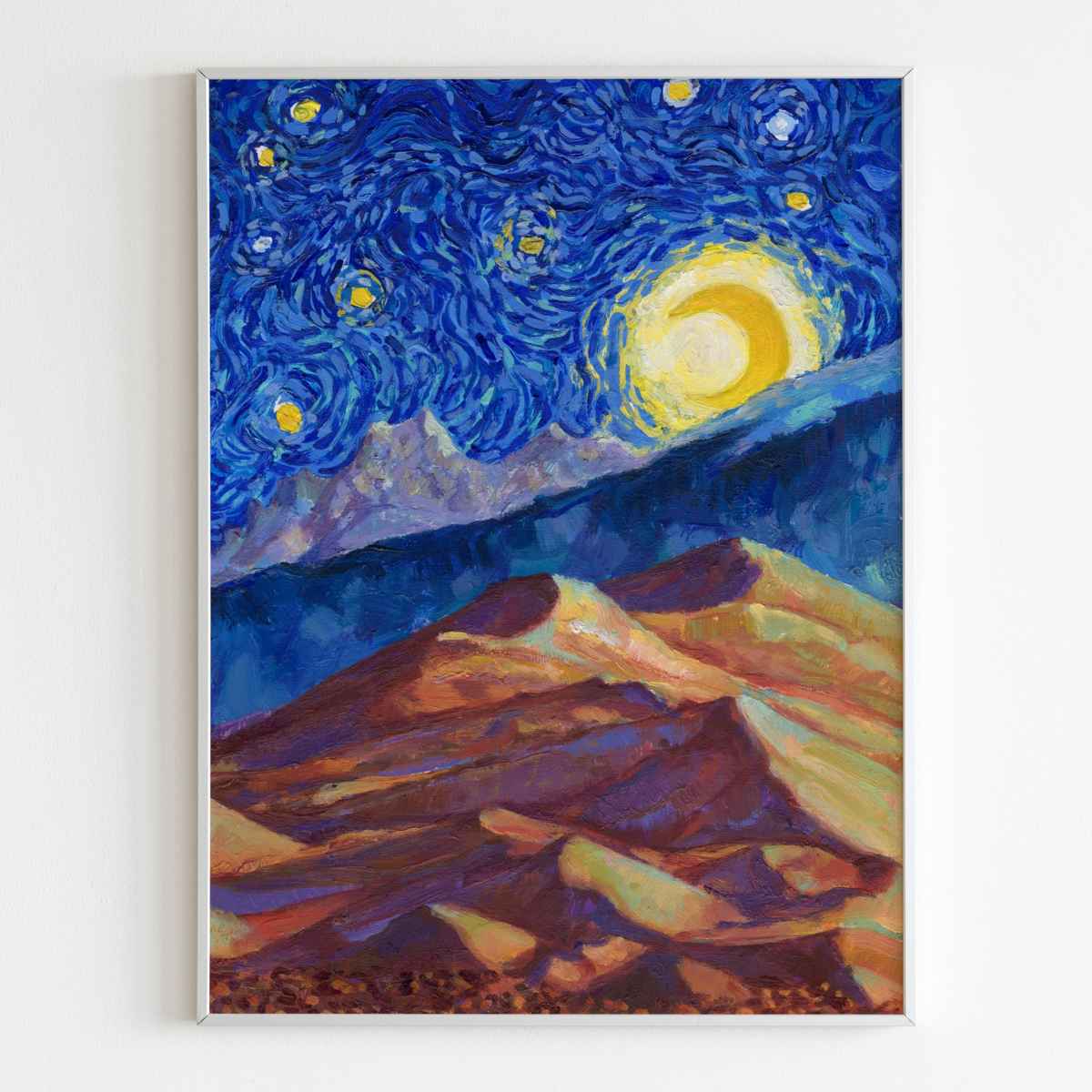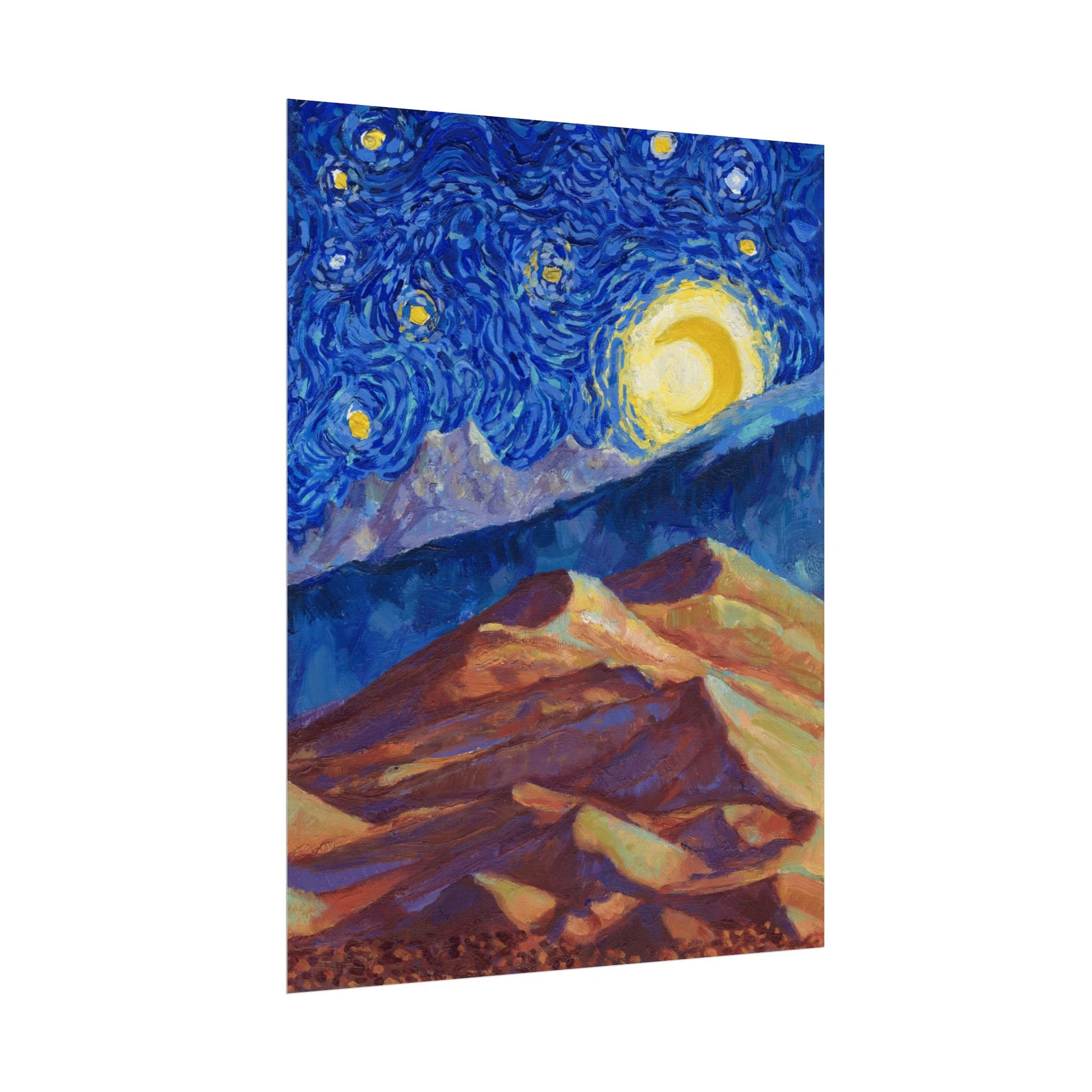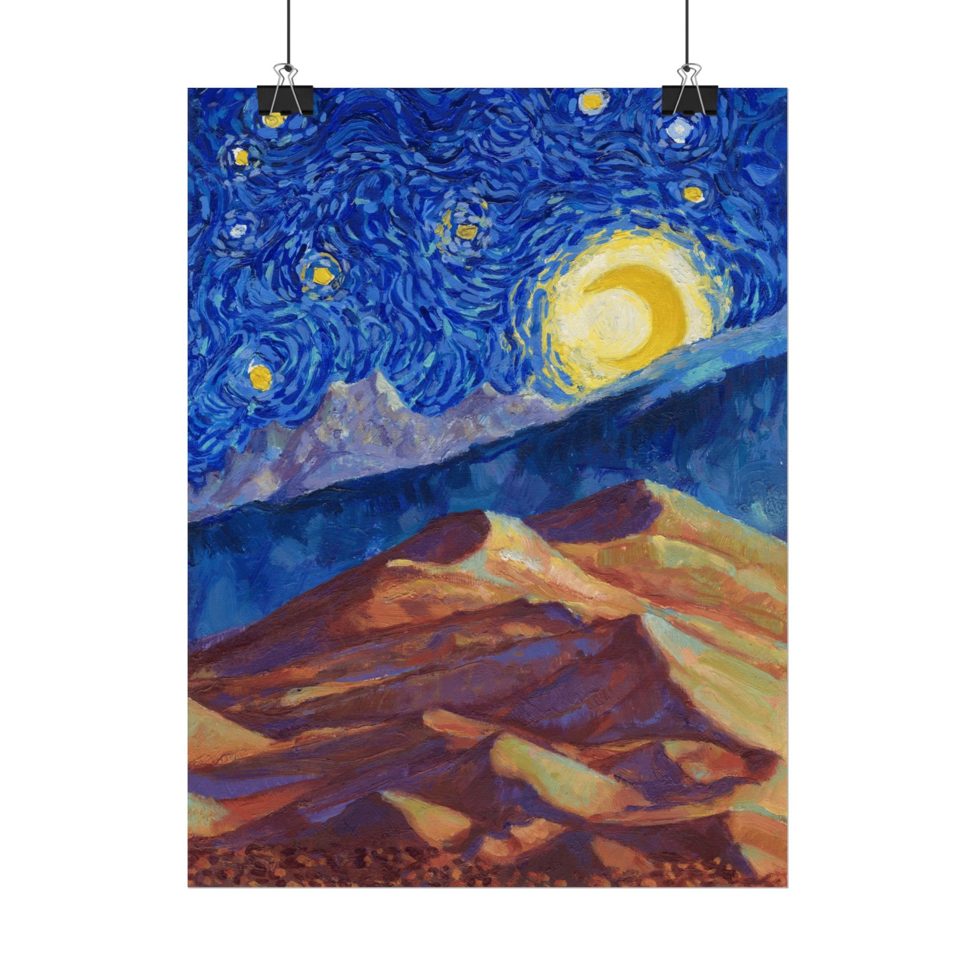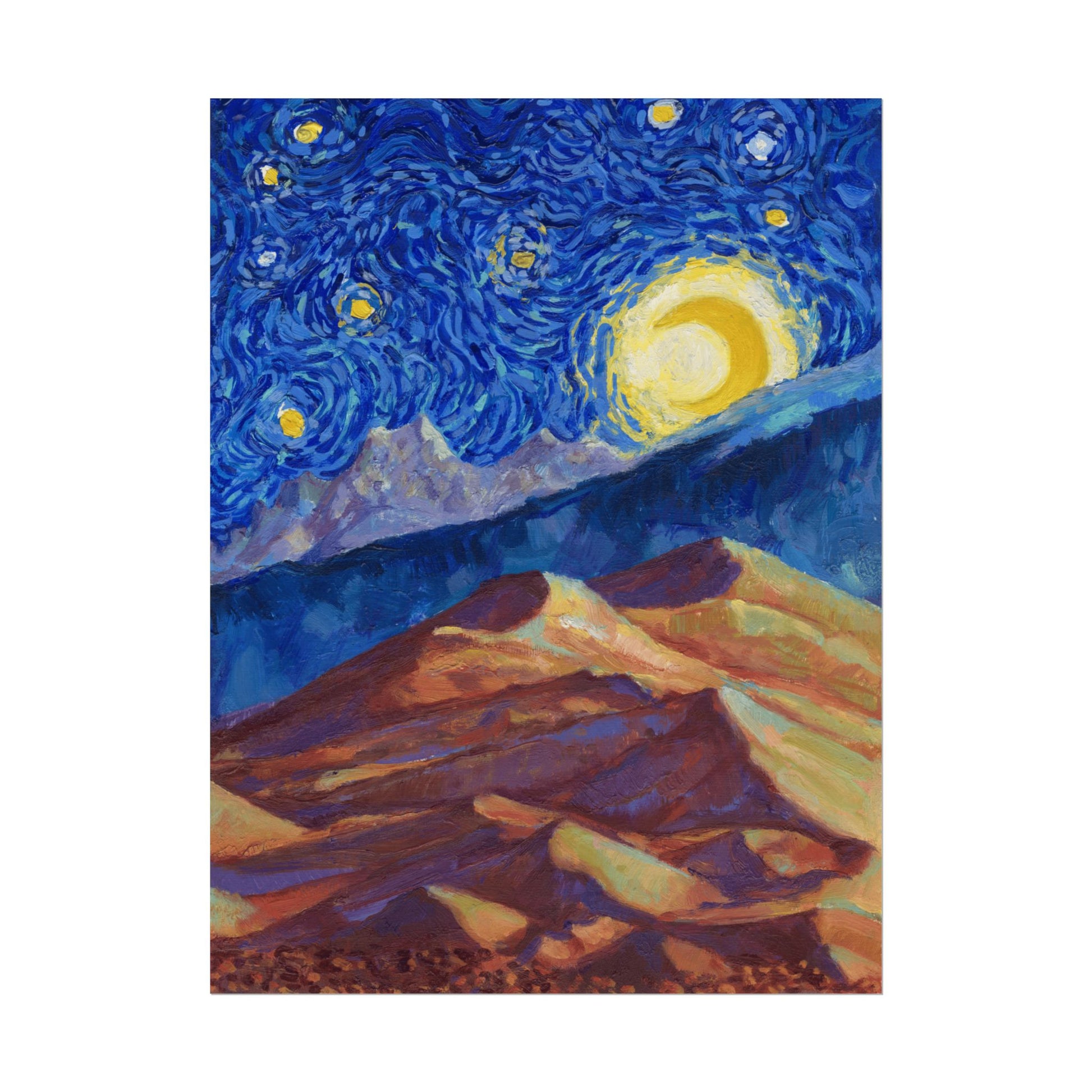 This Great Sand Dunes National Park Poster has to be seen to be believed! We took the highest resolution scans of our hand-painted Starry Night Great Sand Dunes National Park painting and printed it on incredible 285gsm textured paper. When combined with the archival inks, the finished product is almost indistinguishable from the original painting. This is the ultimate version of our Starry Night series.
