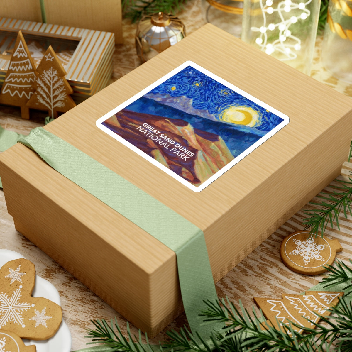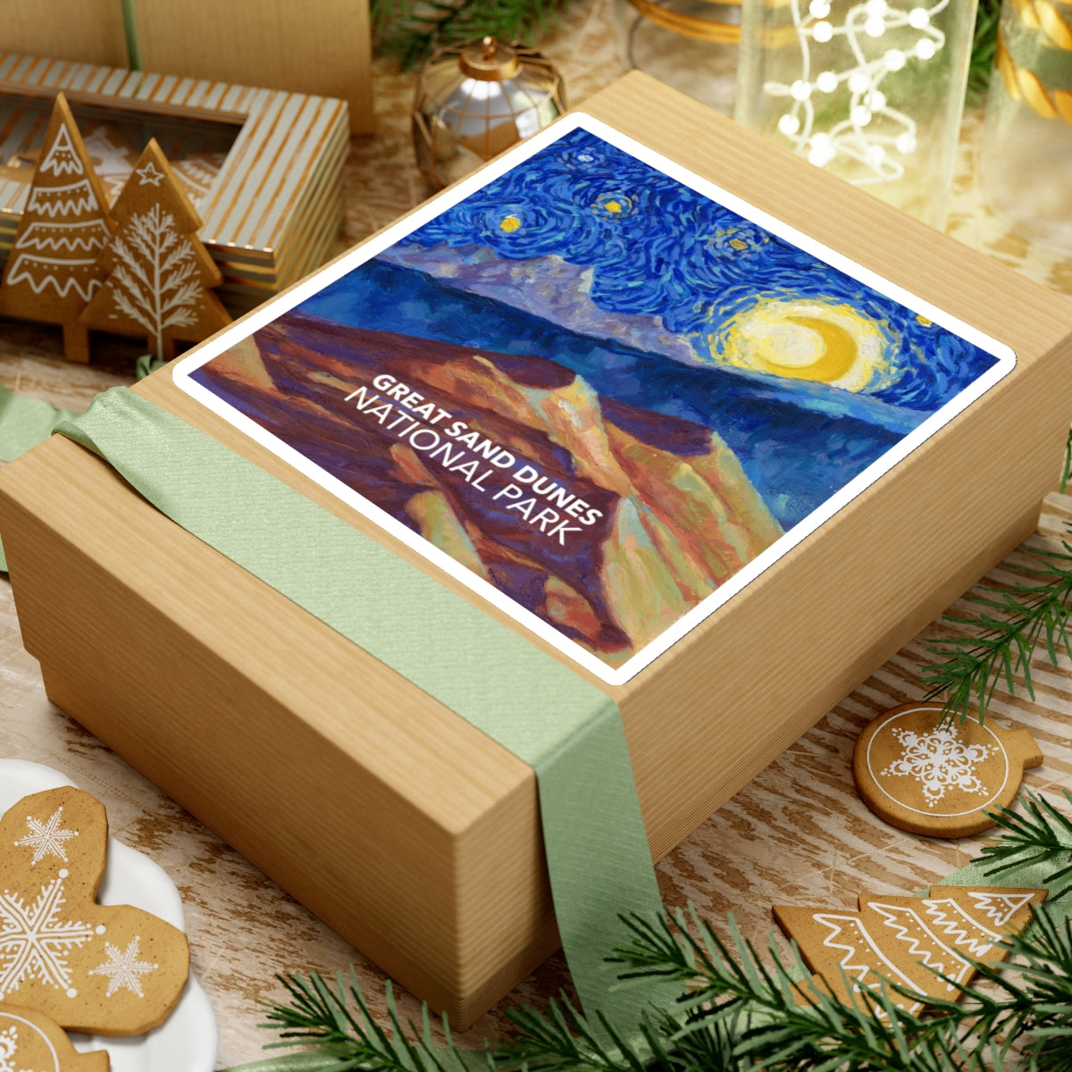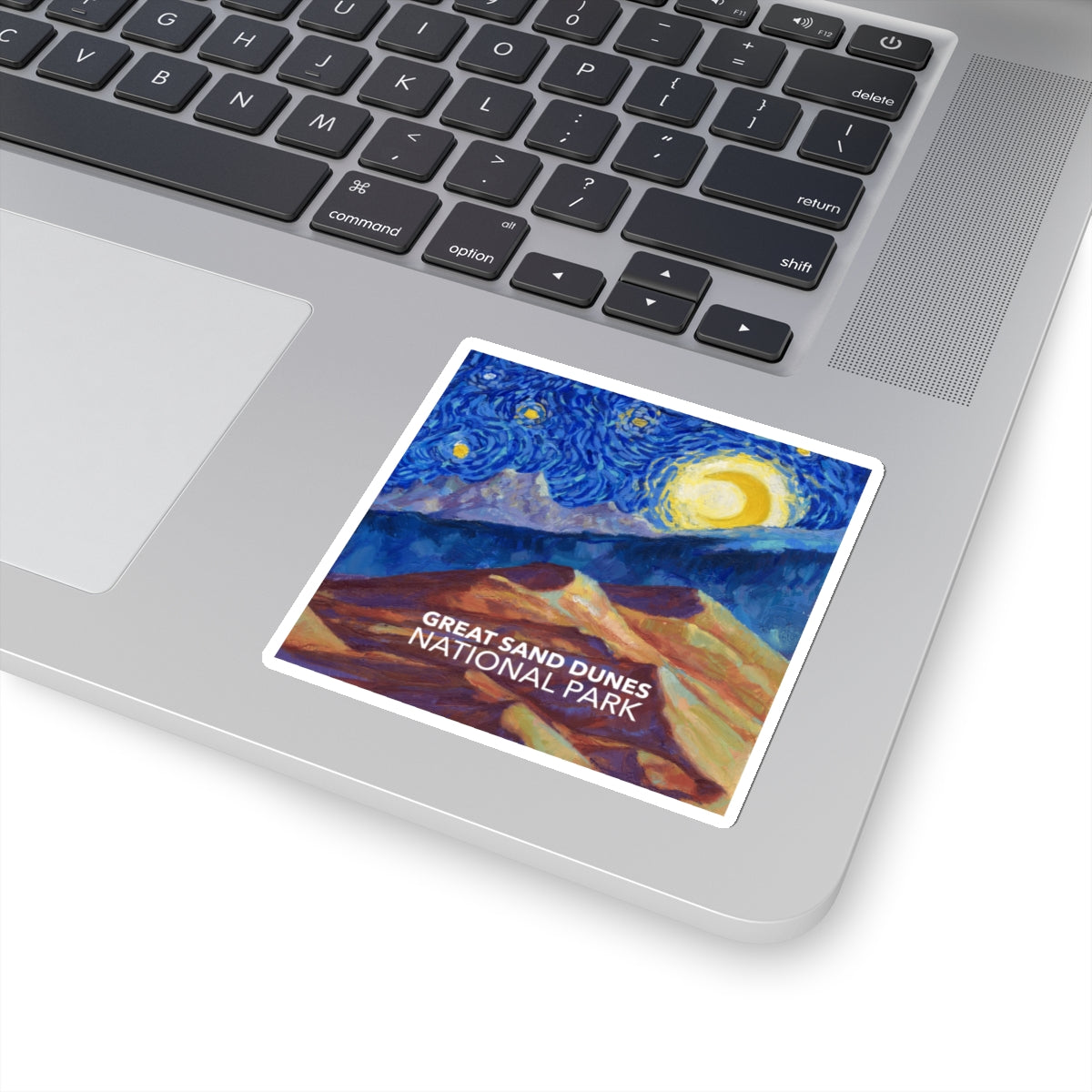 Celebrate the tallest sand dunes in North America in the style of Vincent van Gogh in the style of "Starry Night" with this Great Sand Dunes National Park sticker. The design is exclusive to National Parks Partnership so you won't find these stickers anywhere else.