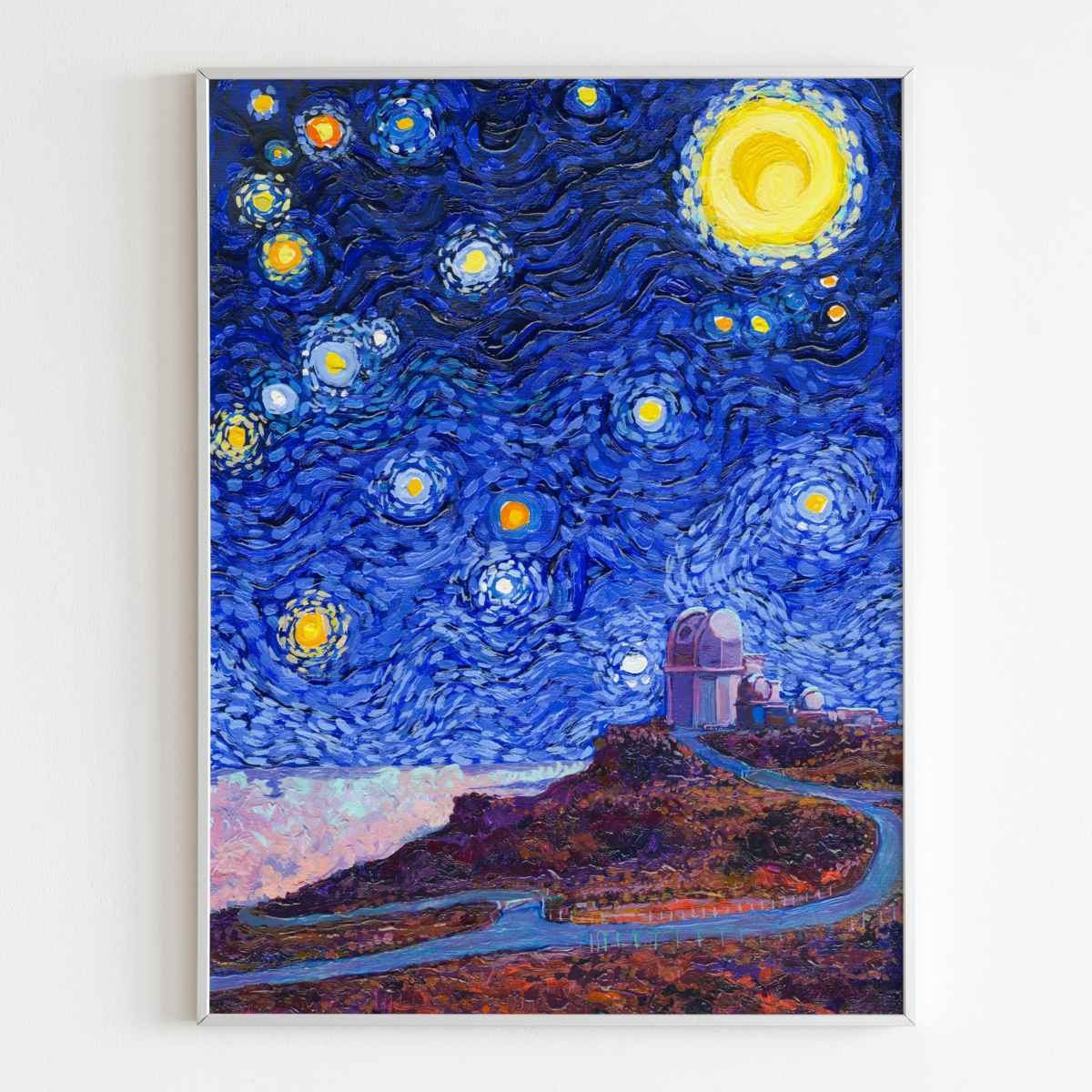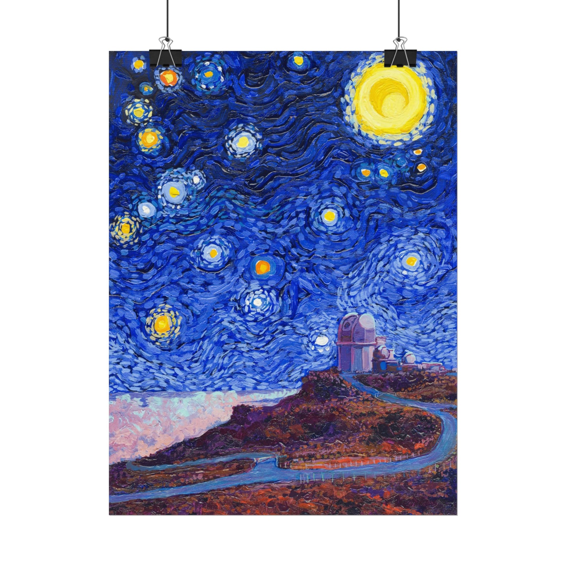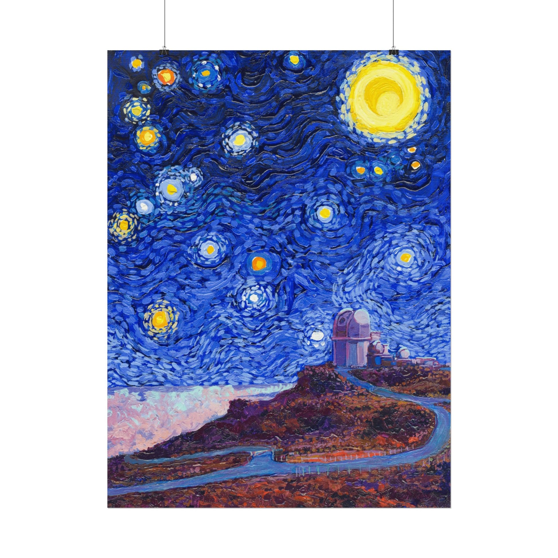 This Haleakalā National Park Poster has to be seen to be believed! It features the Daniel K. Inouye Solar Telescope (DKIST), which is the largest solar telescope in the world. We took the highest resolution scans of our hand-painted Starry Night Haleakalā National Park painting and printed it on incredible 285gsm textured paper. When combined with the archival inks, the finished product is almost indistinguishable from the original painting. This is the ultimate version of our Starry Night series.