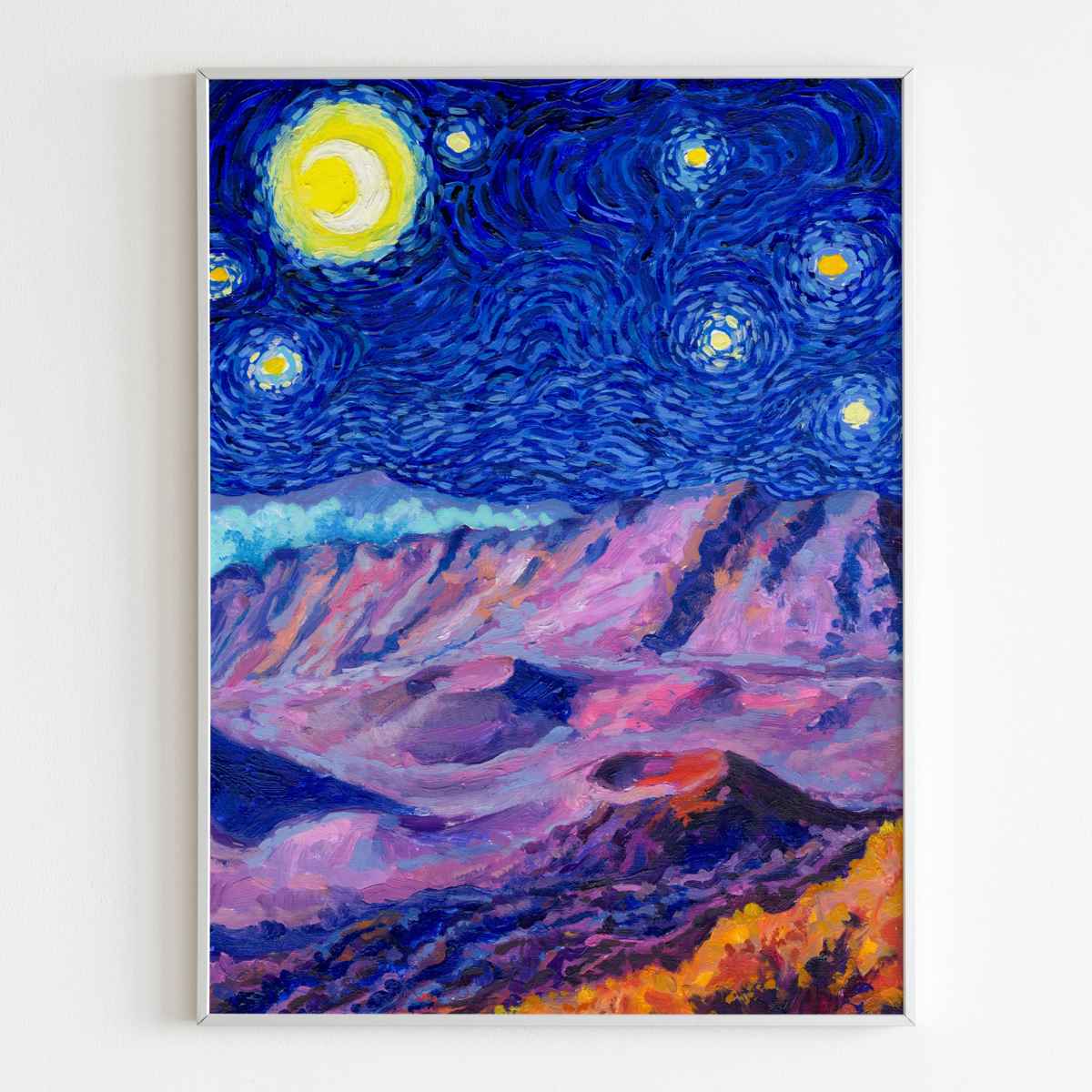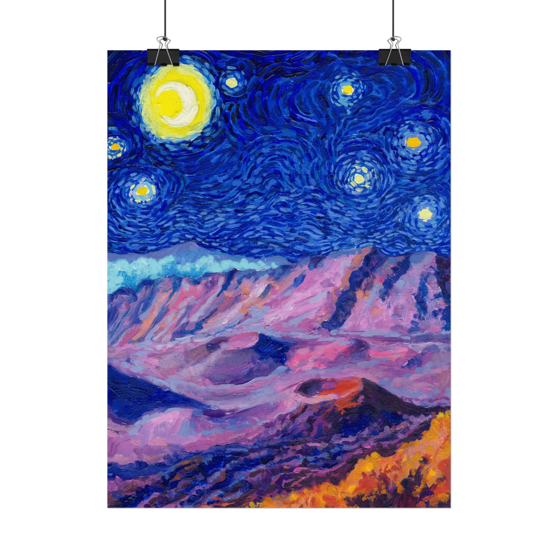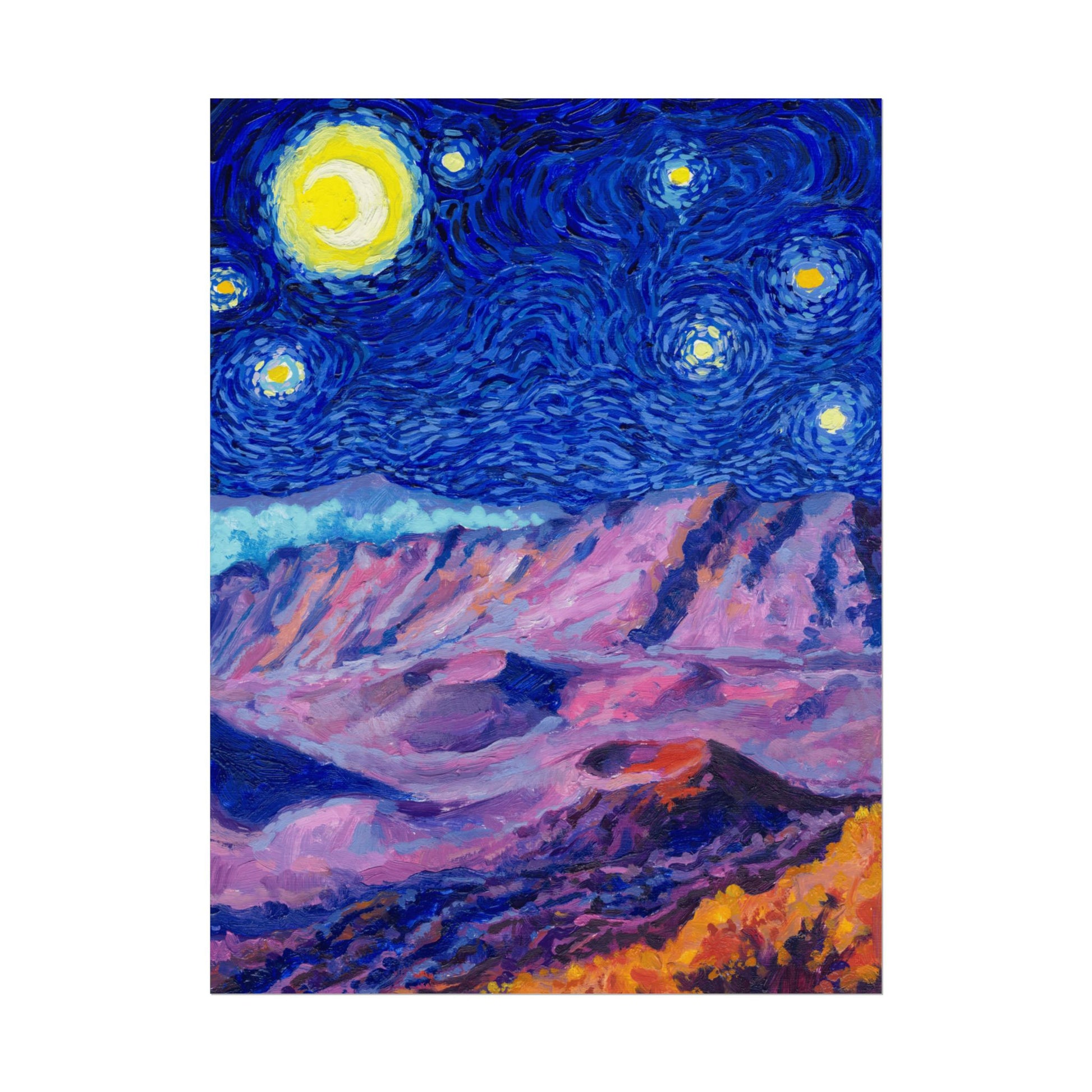 This Haleakalā National Park Poster has to be seen to be believed! We took the highest resolution scans of our hand-painted Starry Night Haleakalā National Park painting and printed it on incredible 285gsm textured paper. When combined with the archival inks, the finished product is almost indistinguishable from the original painting. This is the ultimate version of our Starry Night series.