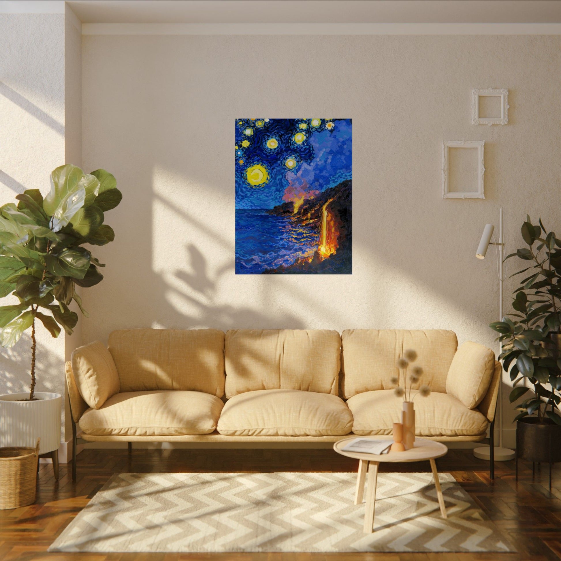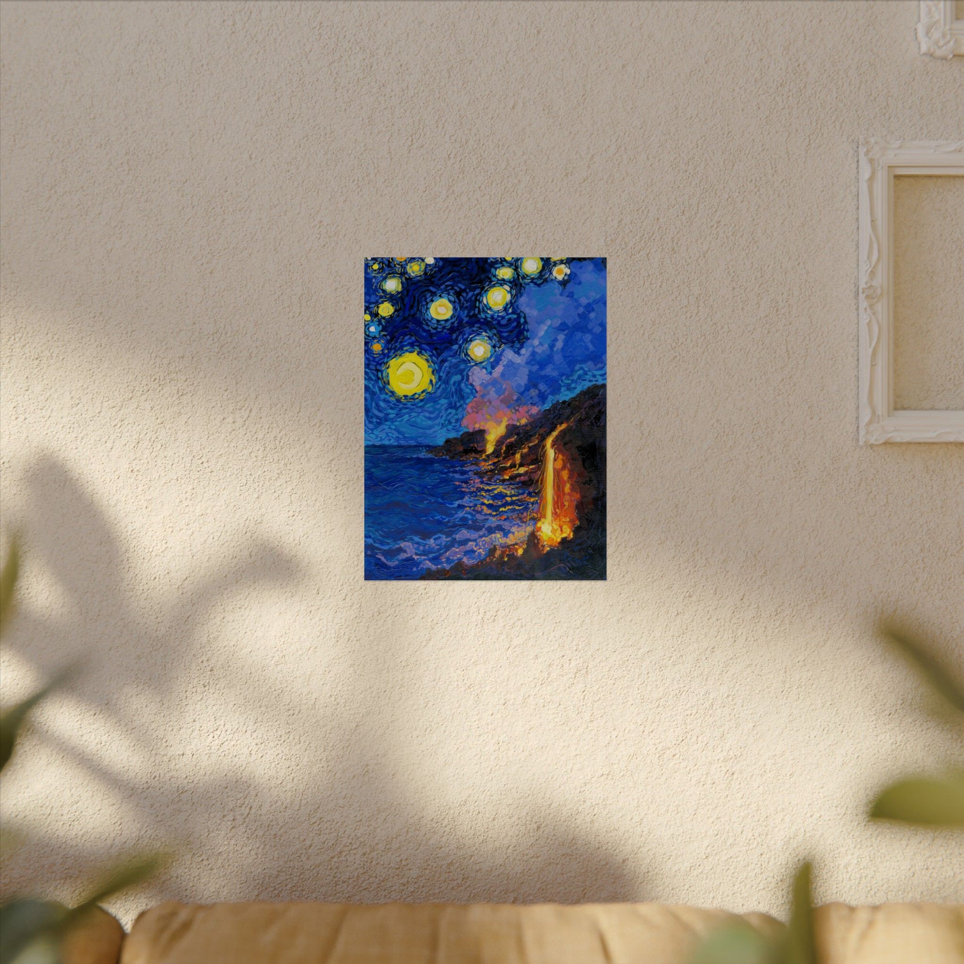 This Hawai'i Volcanoes National Park Poster has to be seen to be believed! We took the highest resolution scans of our hand-painted Starry Night Hawai'i Volcanoes Canyon National Park painting and printed it on incredible 285gsm textured paper. When combined with the archival inks, the finished product is almost indistinguishable from the original painting. This is the ultimate version of our Starry Night series.