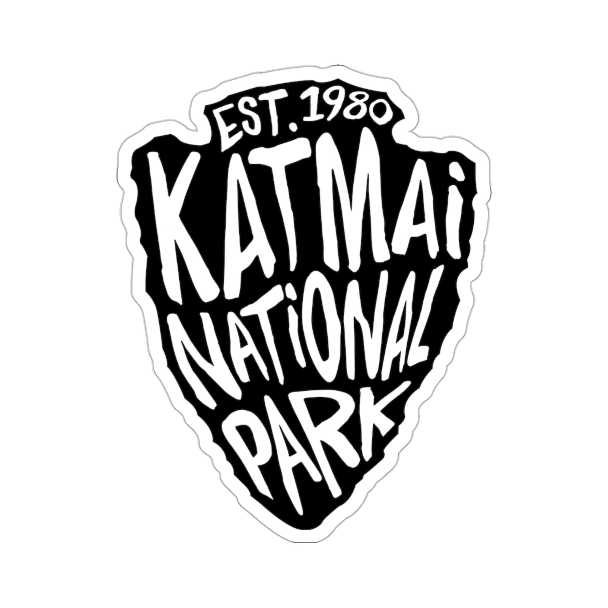 Show your love for Katmai National Park with this stylish sticker! The sticker features a black arrowhead with the park name stenciled on in chunky white letters. The arrowhead is a symbol of the National Park Service, and it represents the park's commitment to protecting the natural and cultural resources of the region.