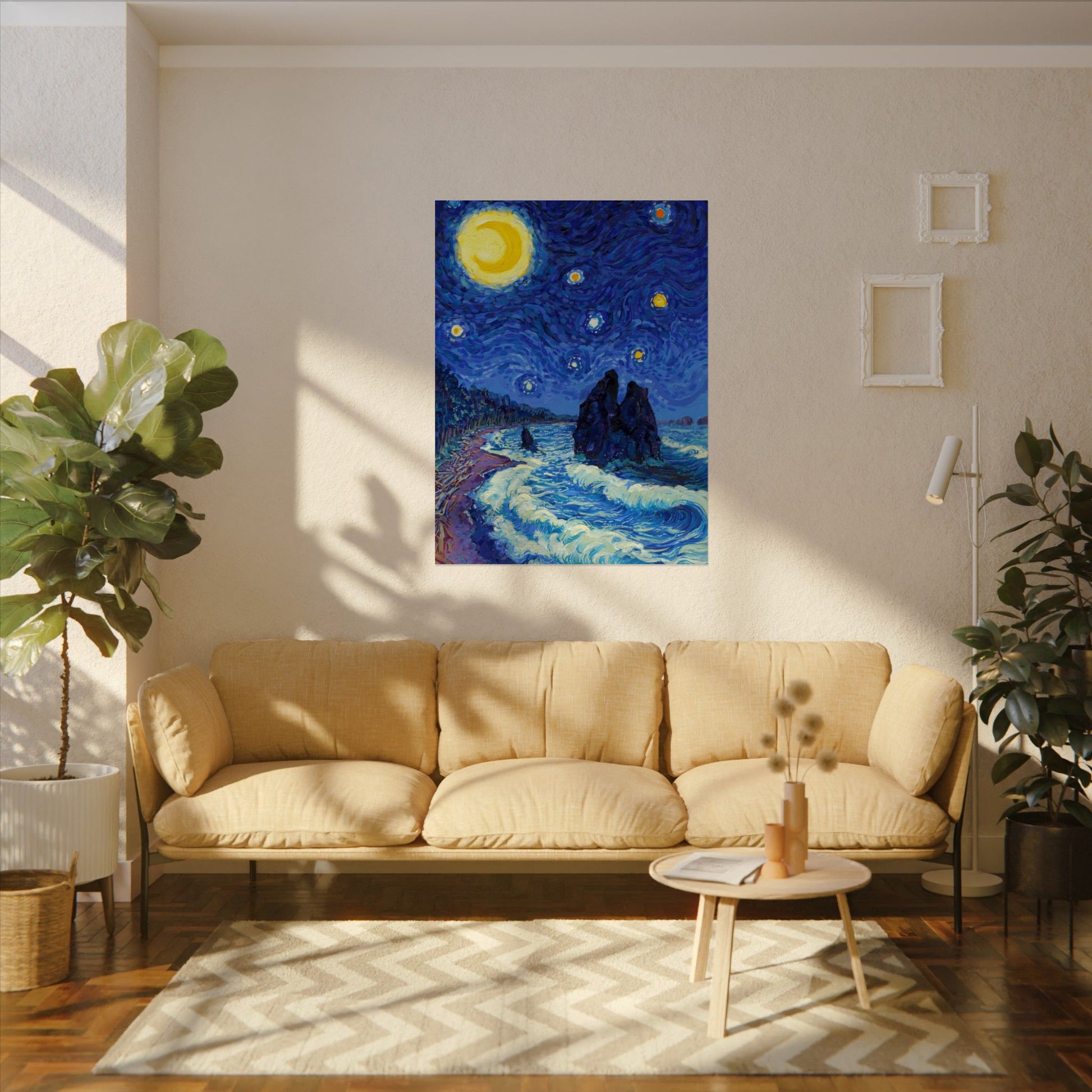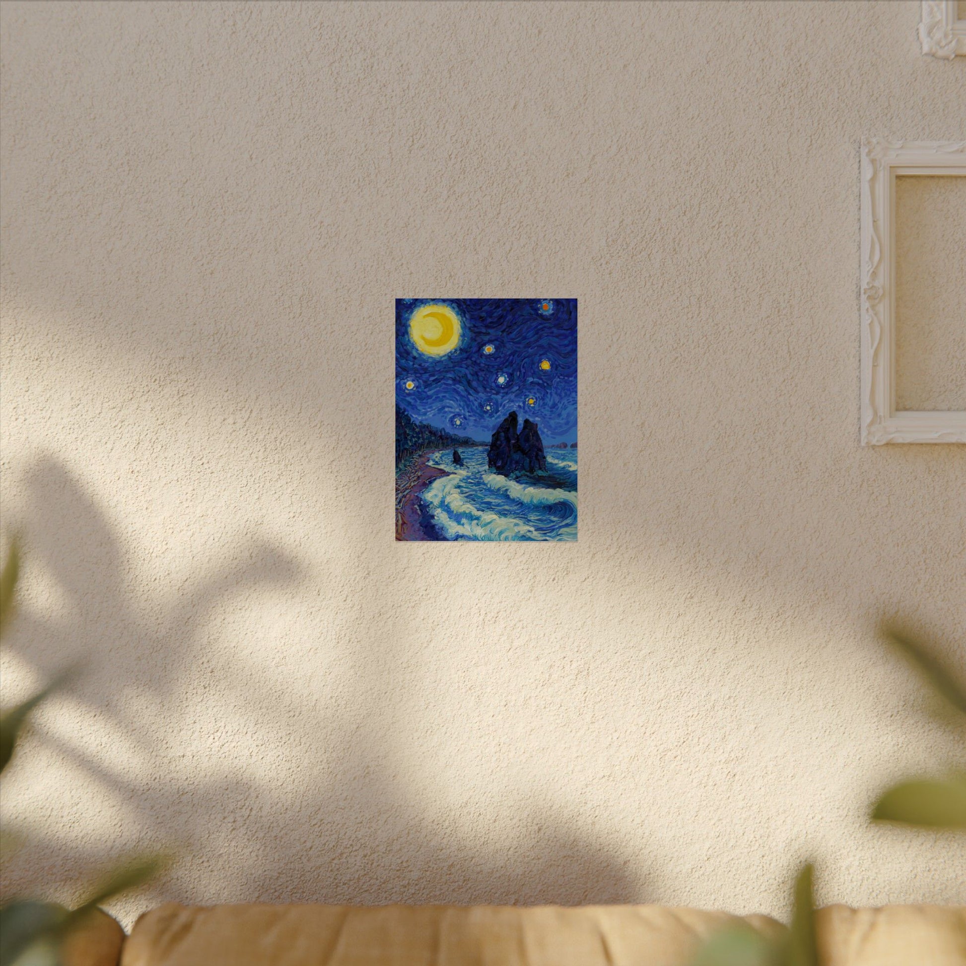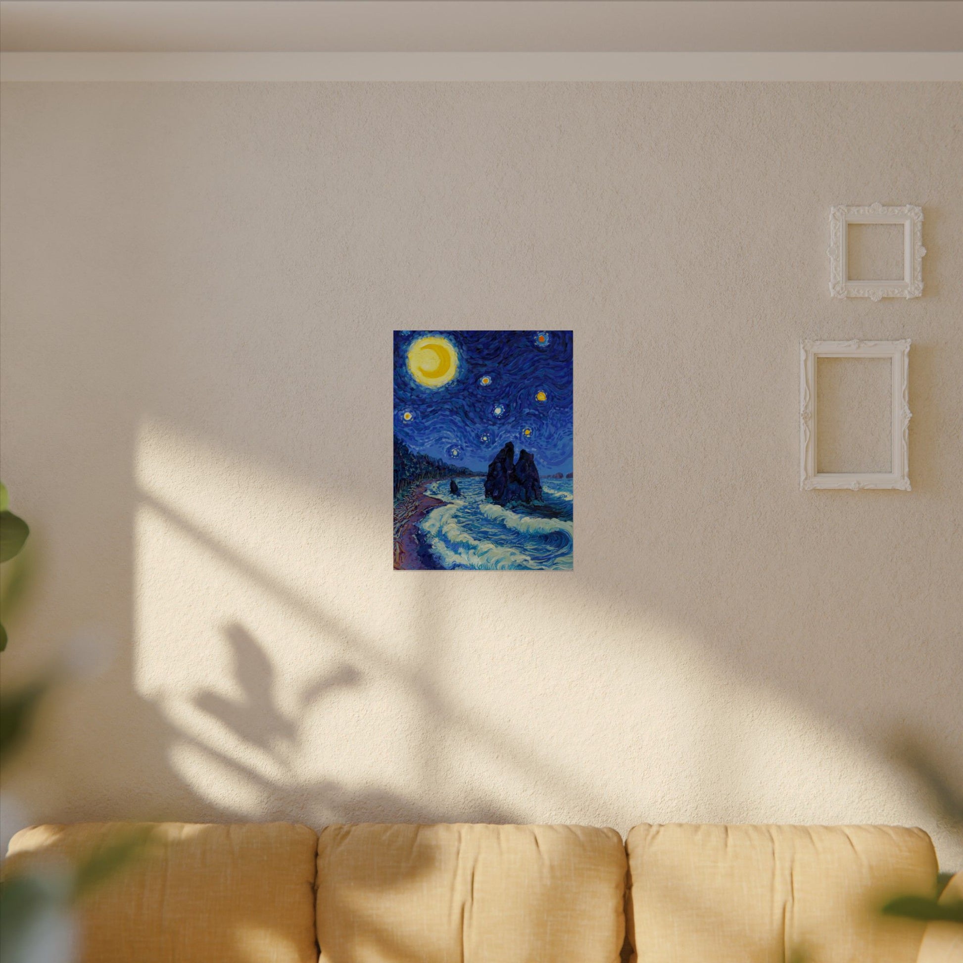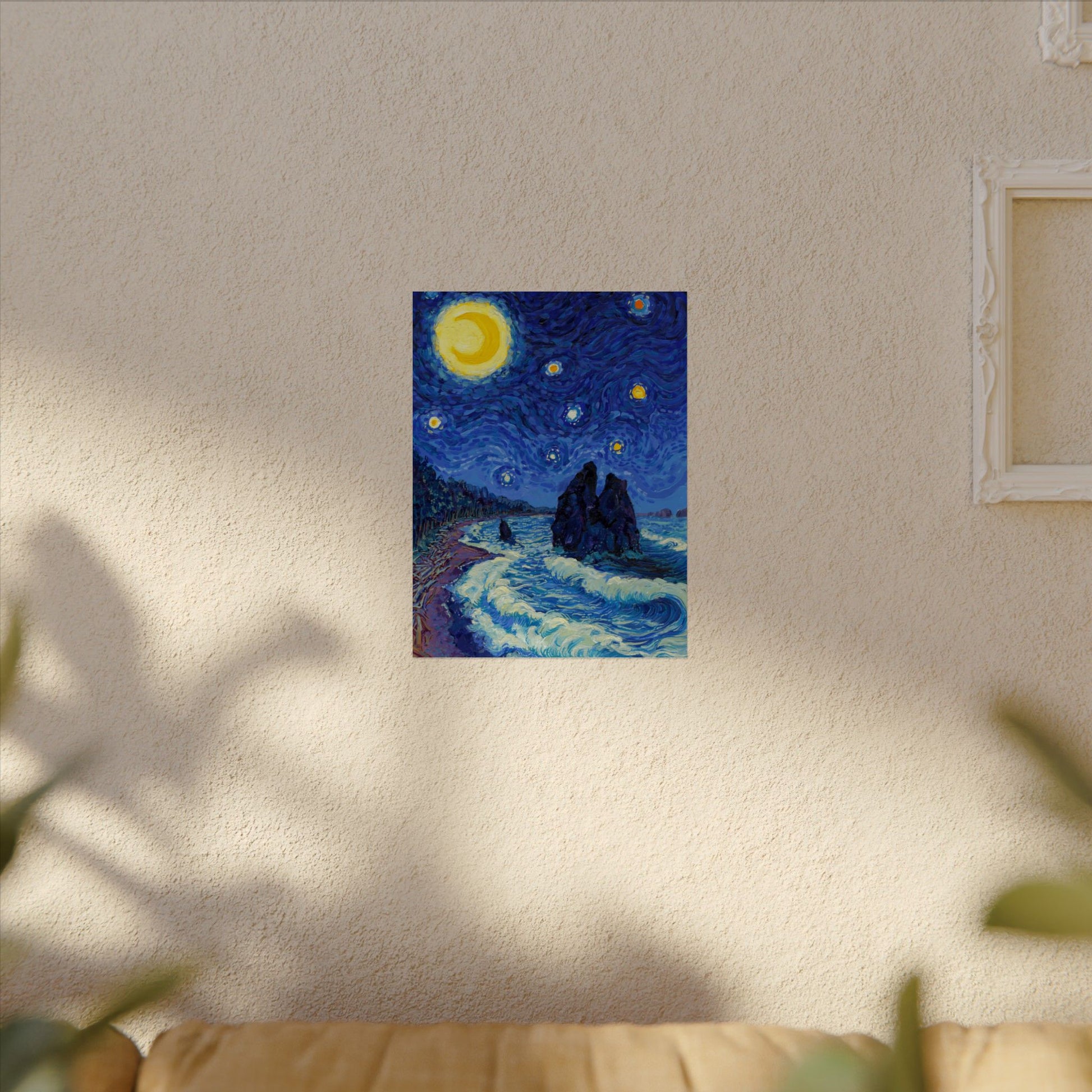 This Olympic National Park Poster has to be seen to be believed! We took the highest resolution scans of our hand-painted Starry Night Olympic National Park painting and printed it on incredible 285gsm textured paper. When combined with the archival inks, the finished product is almost indistinguishable from the original painting. This is the ultimate version of our Starry Night series.