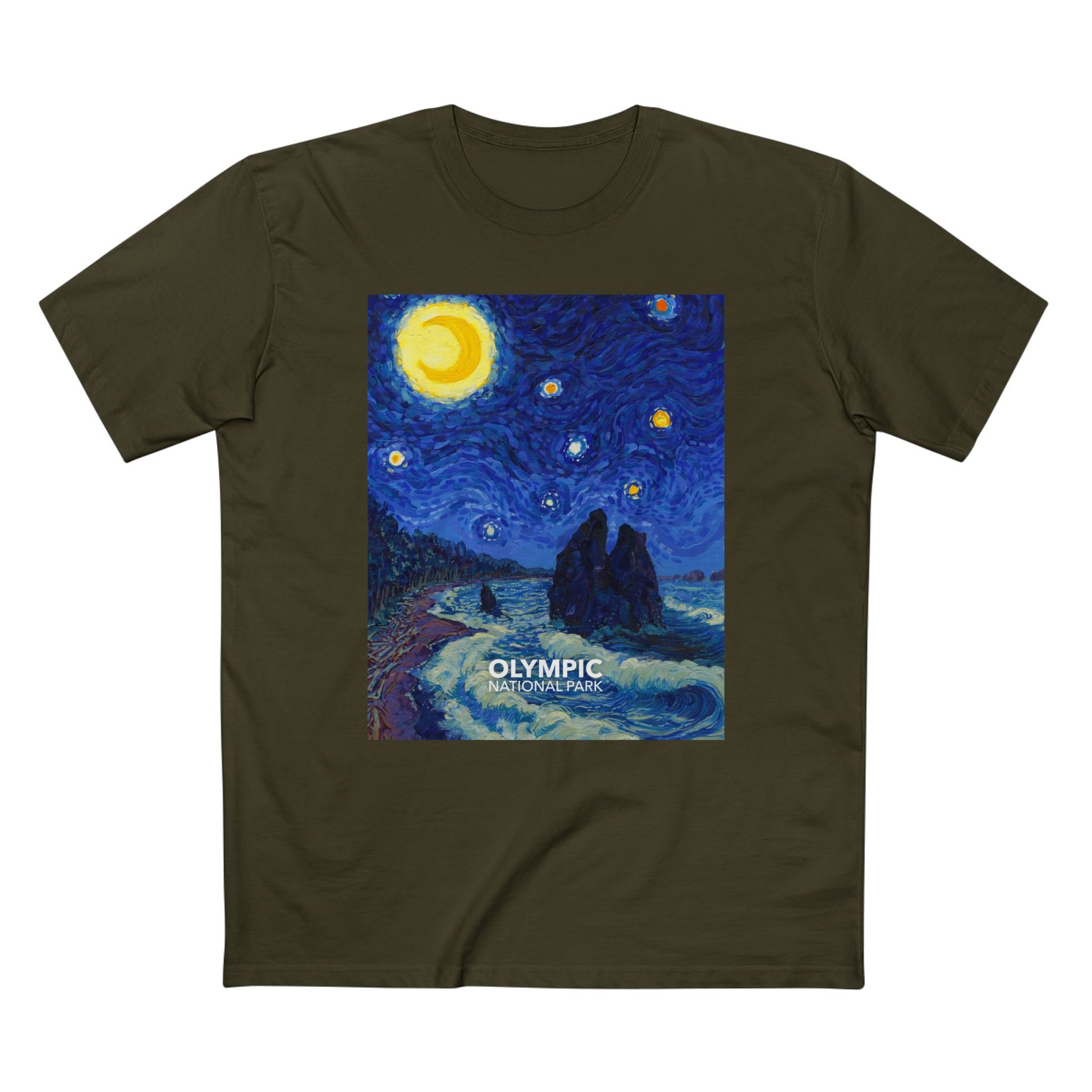 Inspired by the iconic Vincent van Gogh Painting and the incredible coastline of the Pacific Northwest, this Olympic National Park t-shirt is sure to get you compliments!