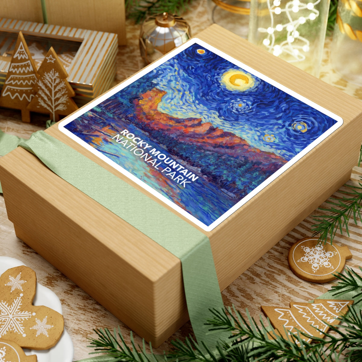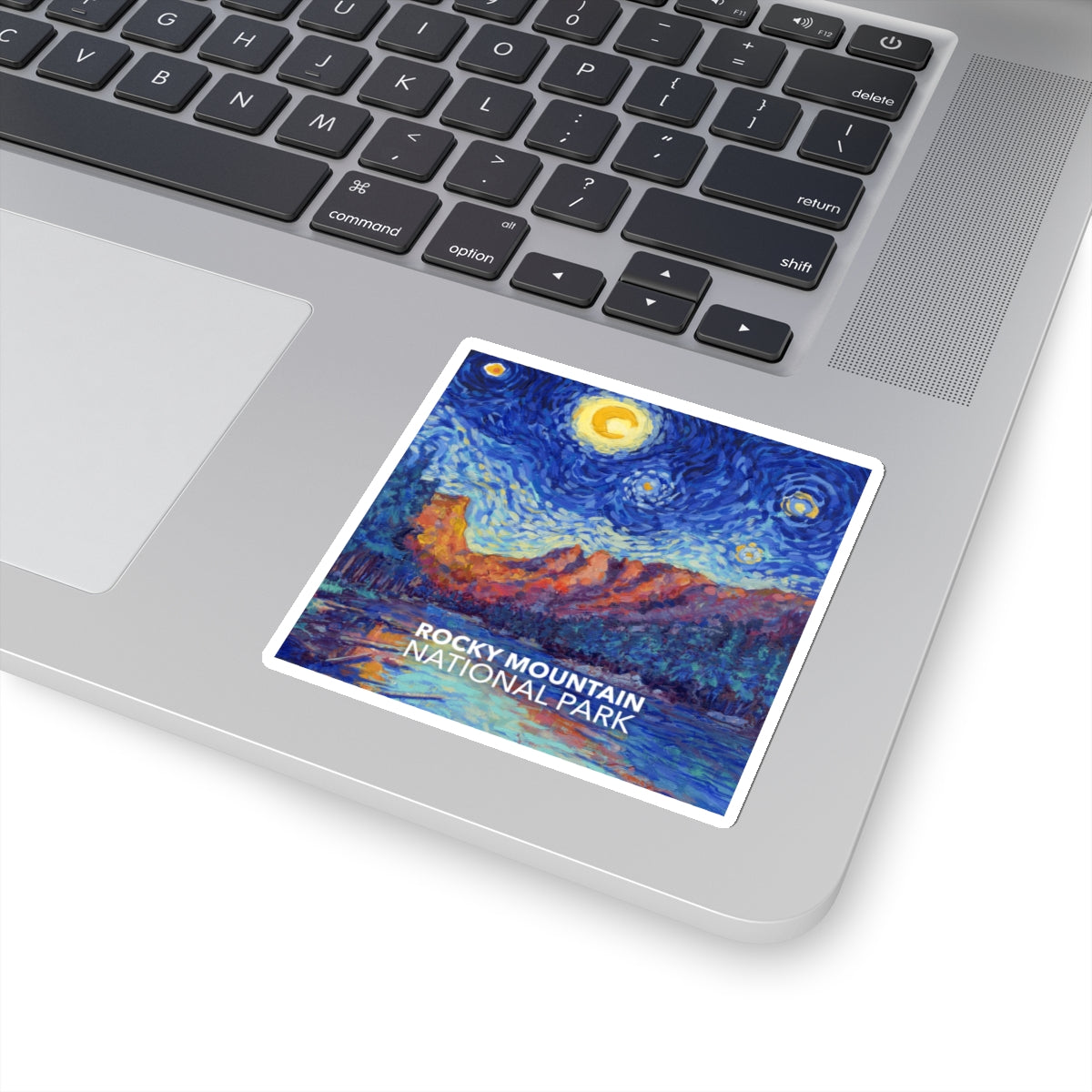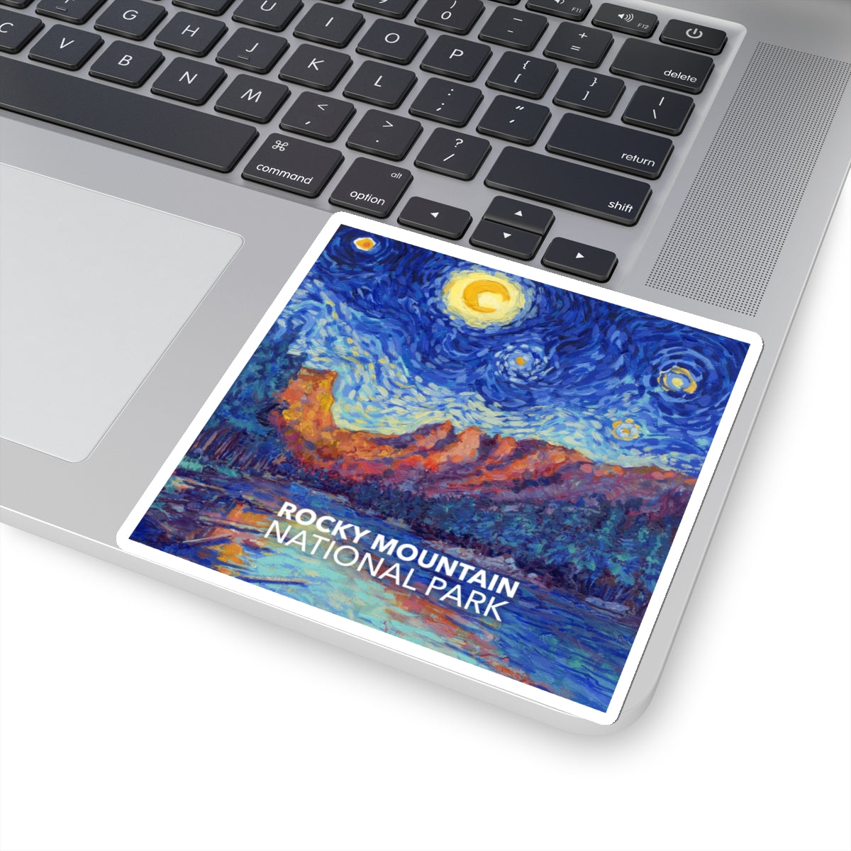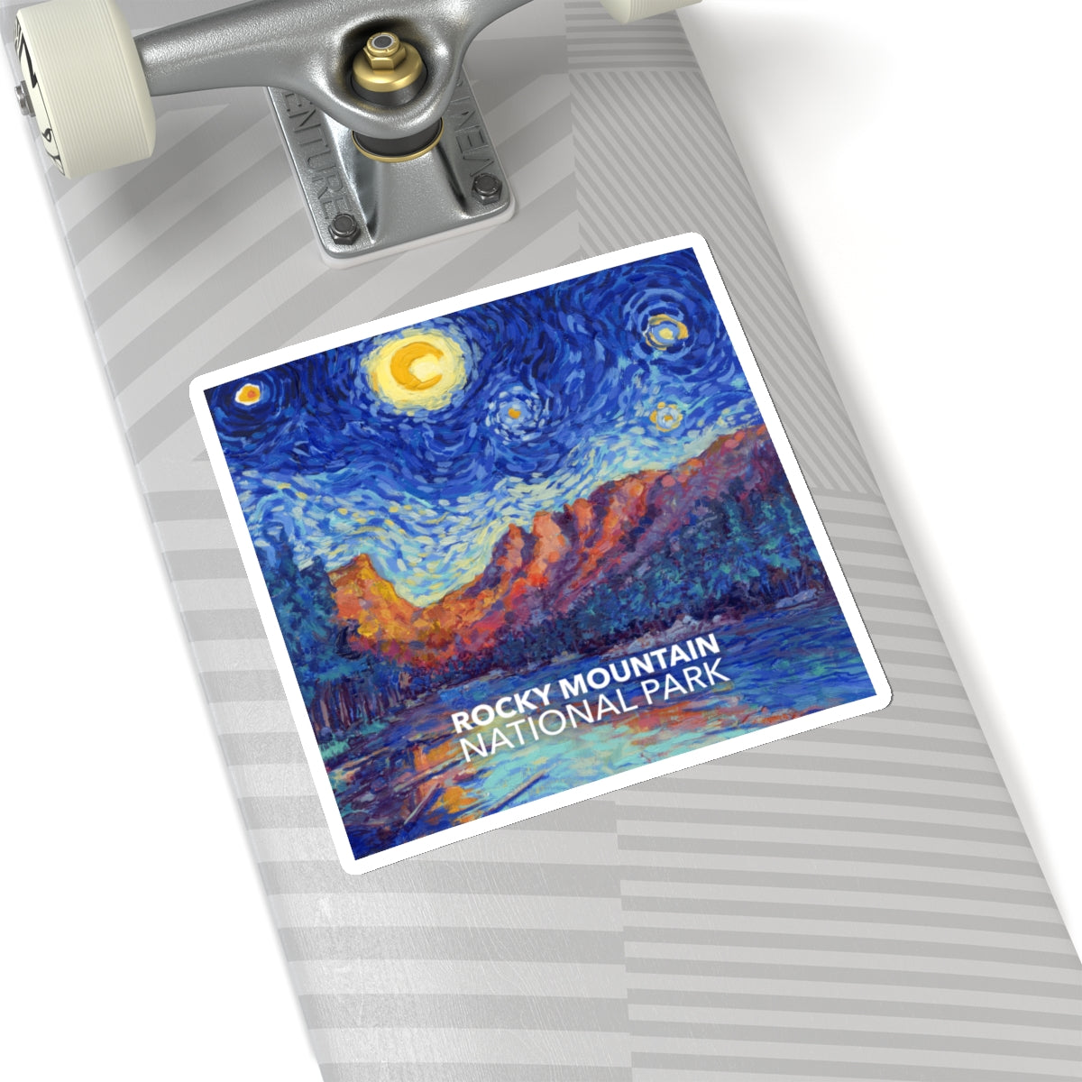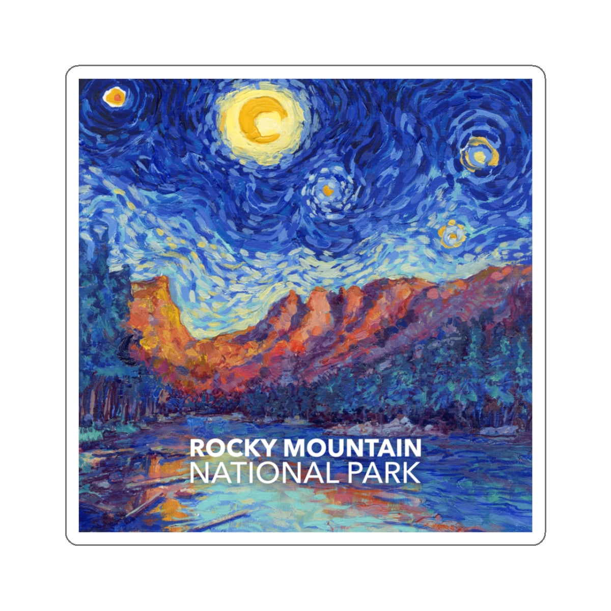 Celebrate the famous mountains of Colorado in the style of Vincent van Gogh in the style of "Starry Night" with this Rocky Mountain National Park sticker. The design is exclusive to National Parks Partnership so you won't find these stickers anywhere else.