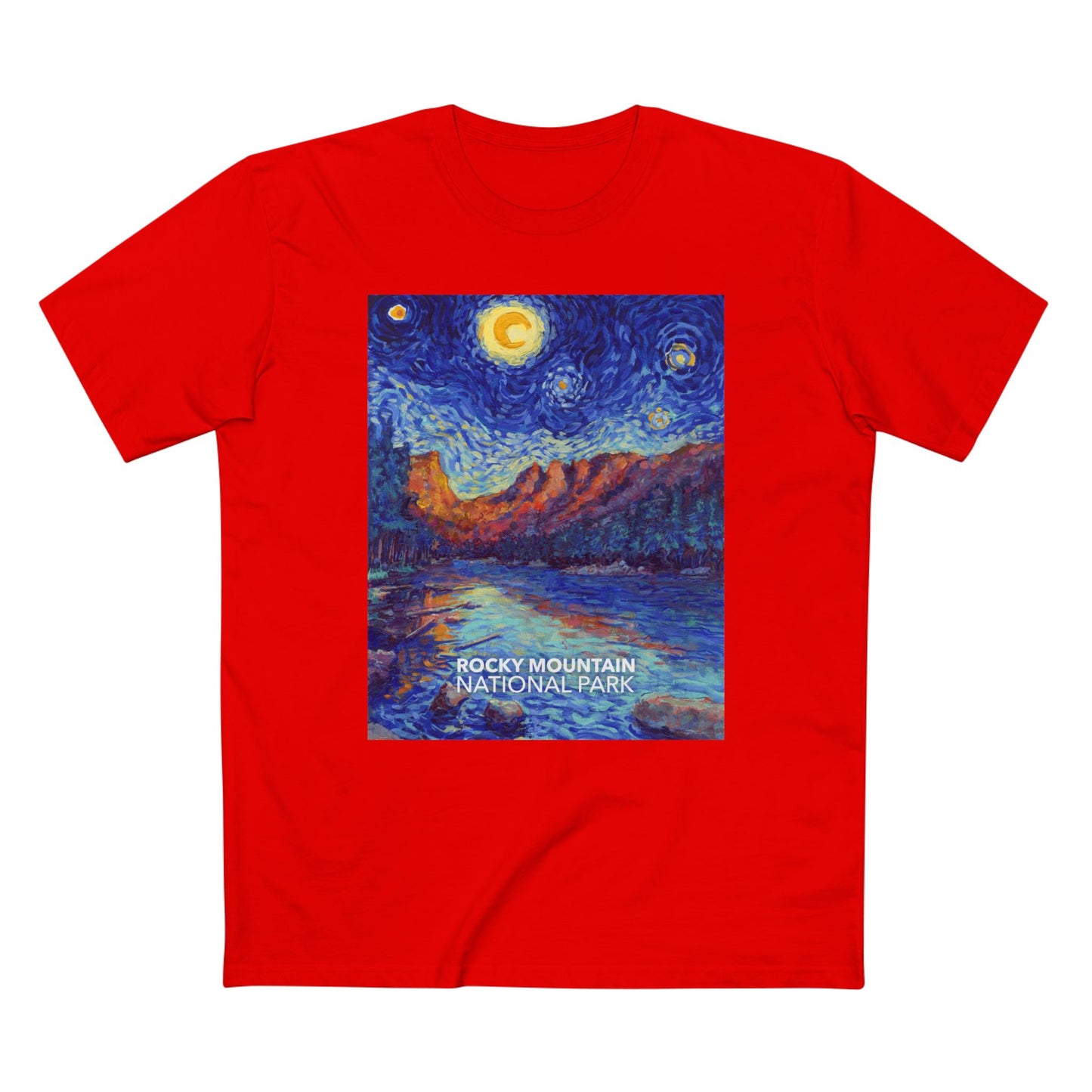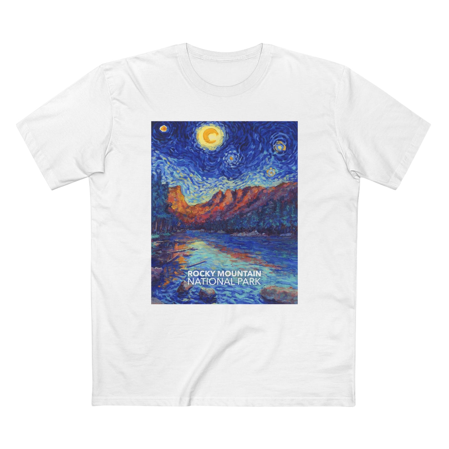 Inspired by the iconic Vincent van Gogh Painting and the famous mountains of Colorado, this Rocky Mountain National Park t-shirt is sure to get you compliments!