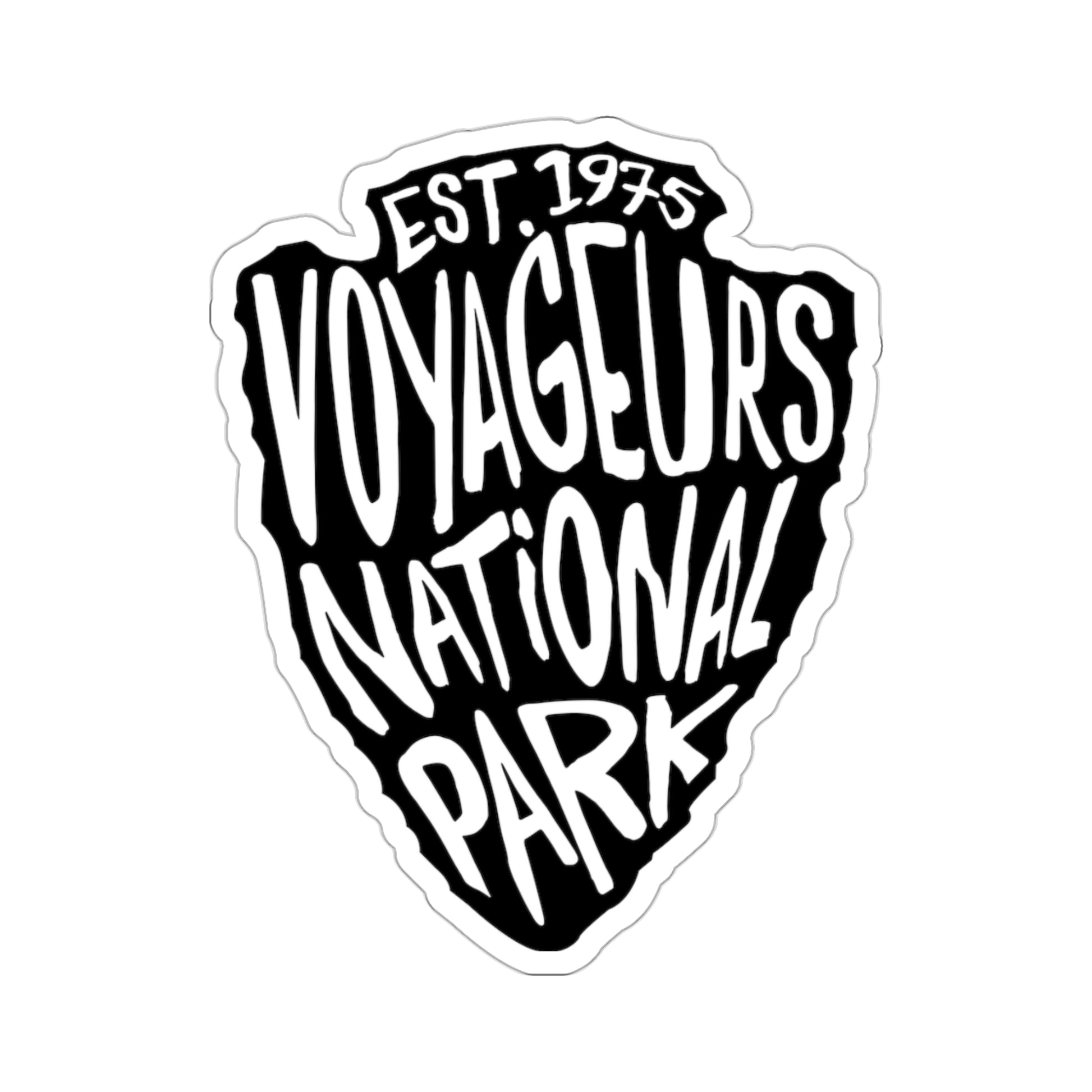 Voyageurs National Park is a beautiful place, and this sticker is the perfect way to show your love for it. The sticker features a black arrowhead with the park's name stenciled on in chunky white letters. The arrowhead is a symbol of the National Park Service, and it represents the park's commitment to preserving our natural heritage.