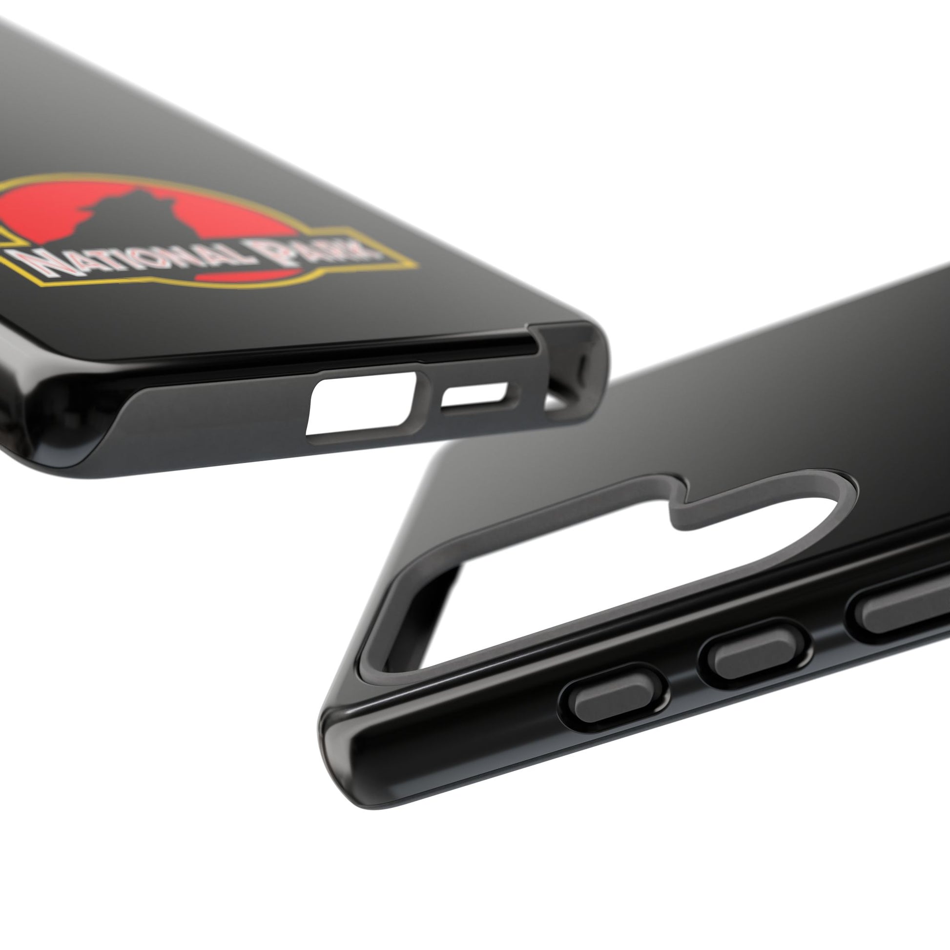This phone case features a parody of the popular 90s dinosaur mega-franchise logo - but with a national park twist! Our National Park Phone Cases provides great protection for all the latest models of iPhone. Just select your desired model from the drop-down list. This phone case is available or iPhone 17, iPhone 17 Pro, iPhone 17 Pro Max, iPhone Air as well as the most recent models of Samsung Galaxy and Google Pixel.