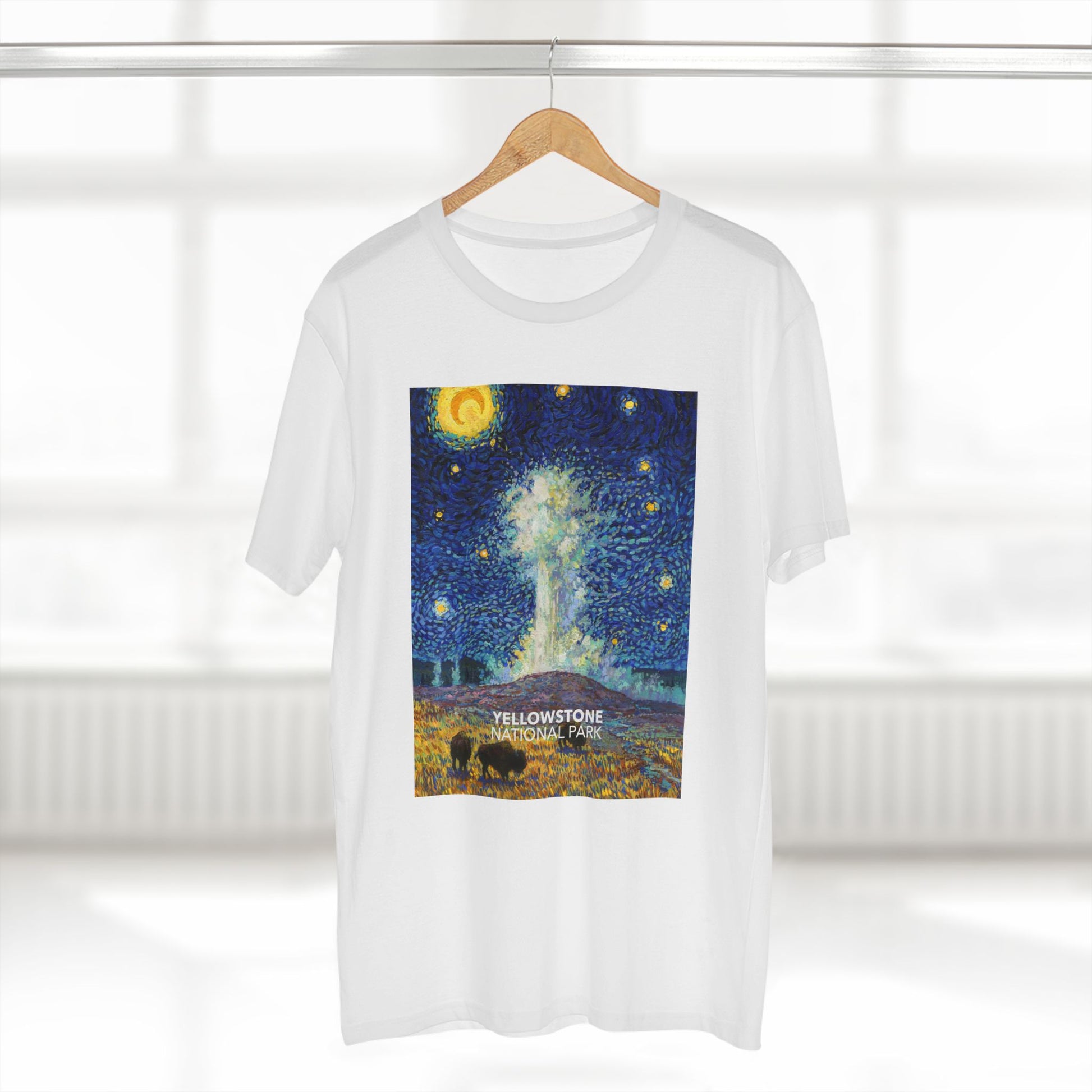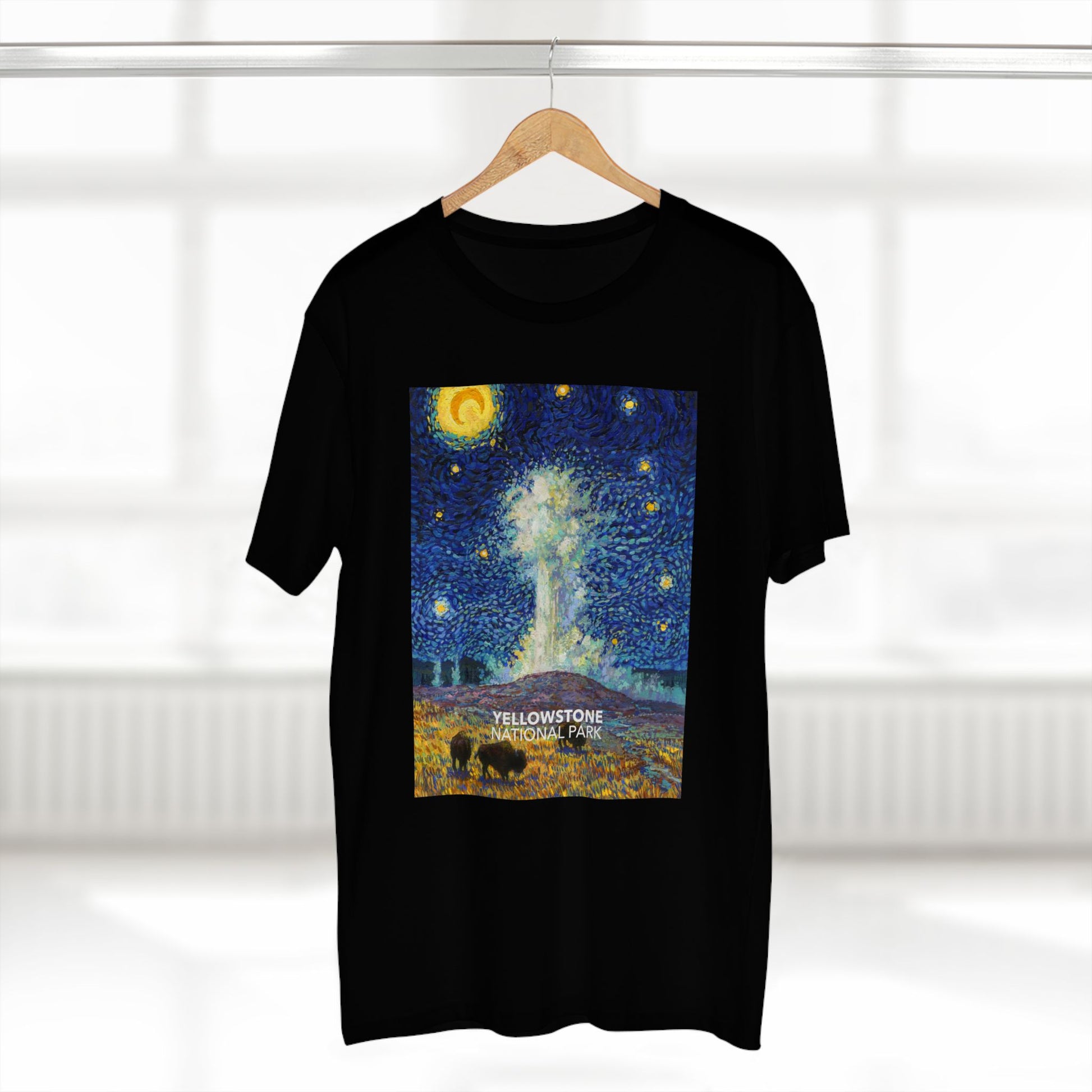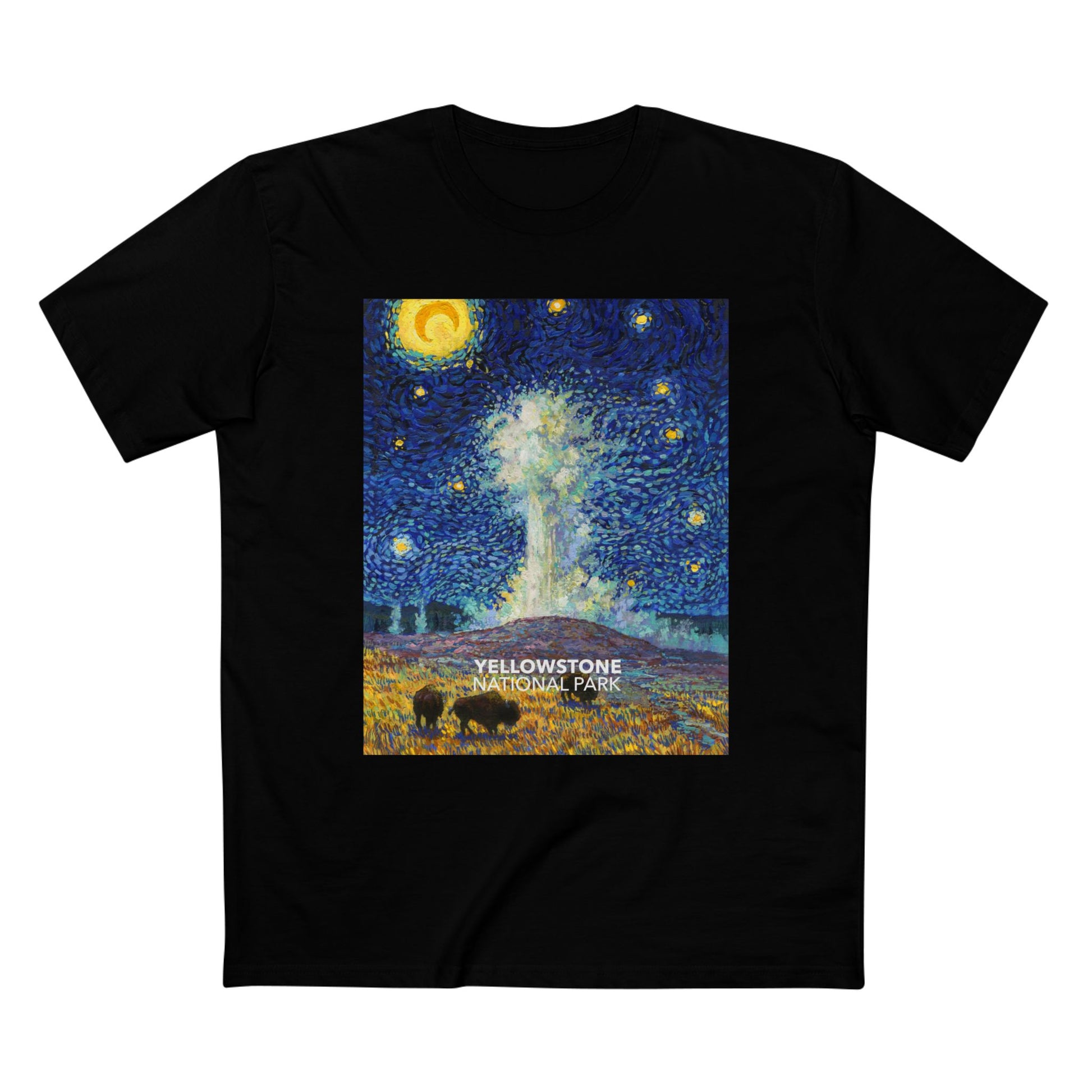 Inspired by the world-famous Vincent van Gogh Painting and the world-famous Old Faithful Geyser in Yellowstone National Park. This shirt is sure to get you a few compliments!