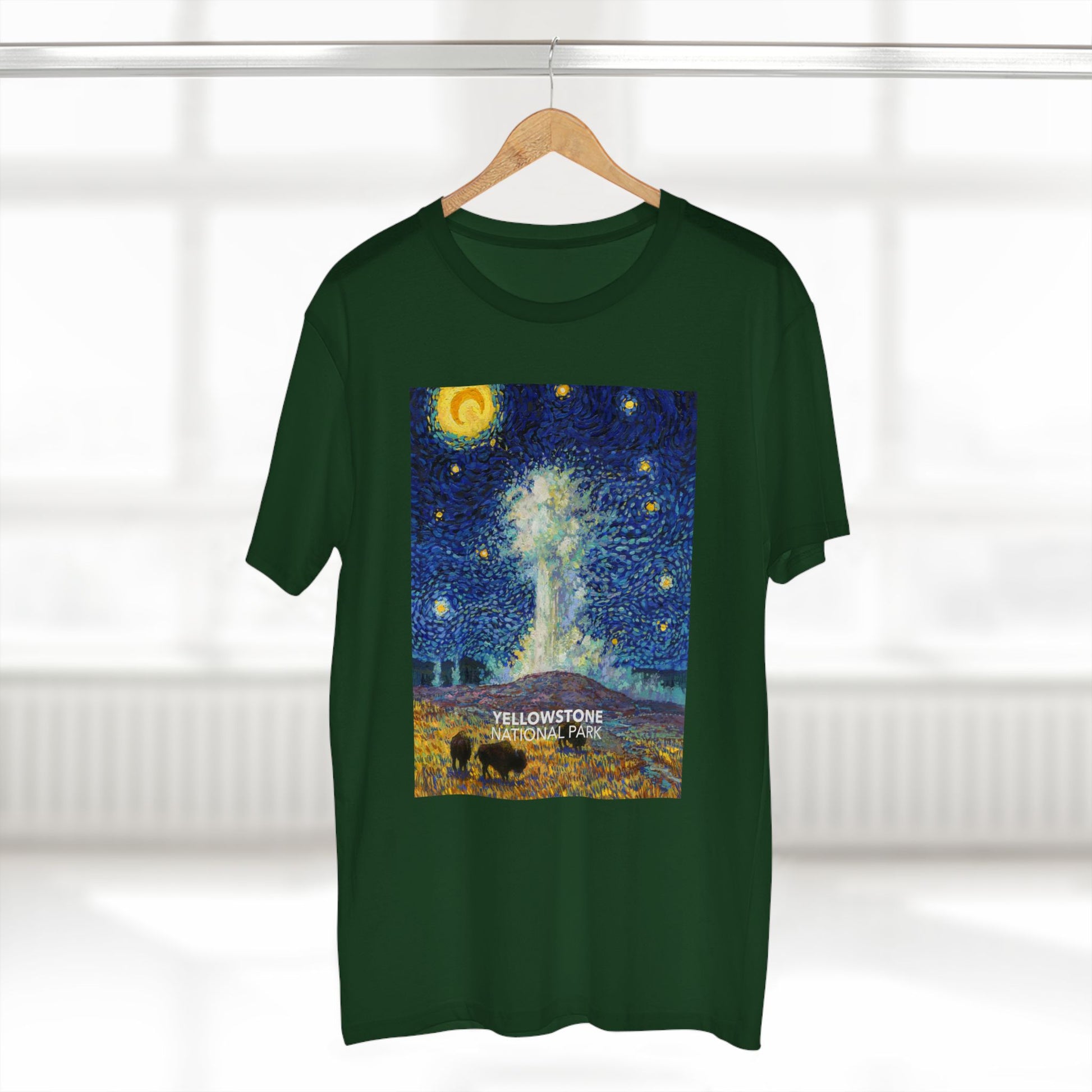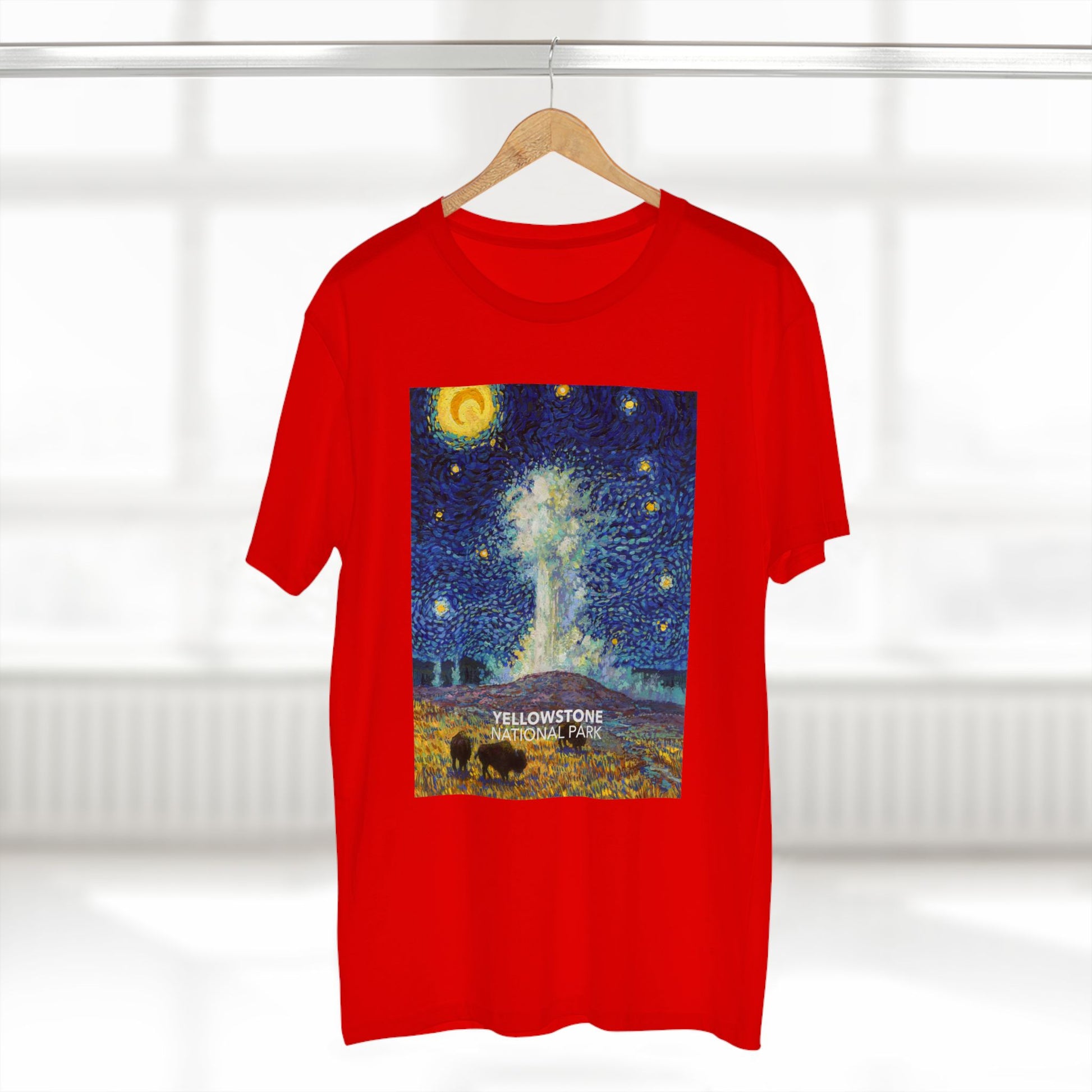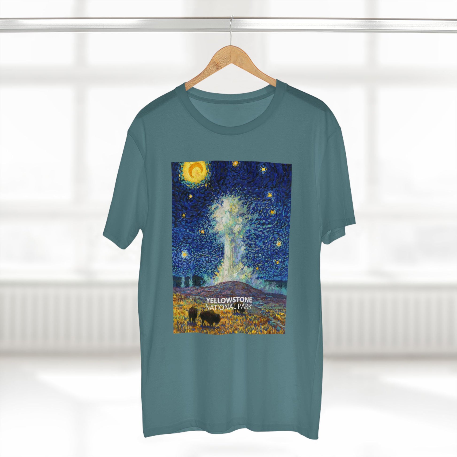 Inspired by the world-famous Vincent van Gogh Painting and the world-famous Old Faithful Geyser in Yellowstone National Park. This shirt is sure to get you a few compliments!