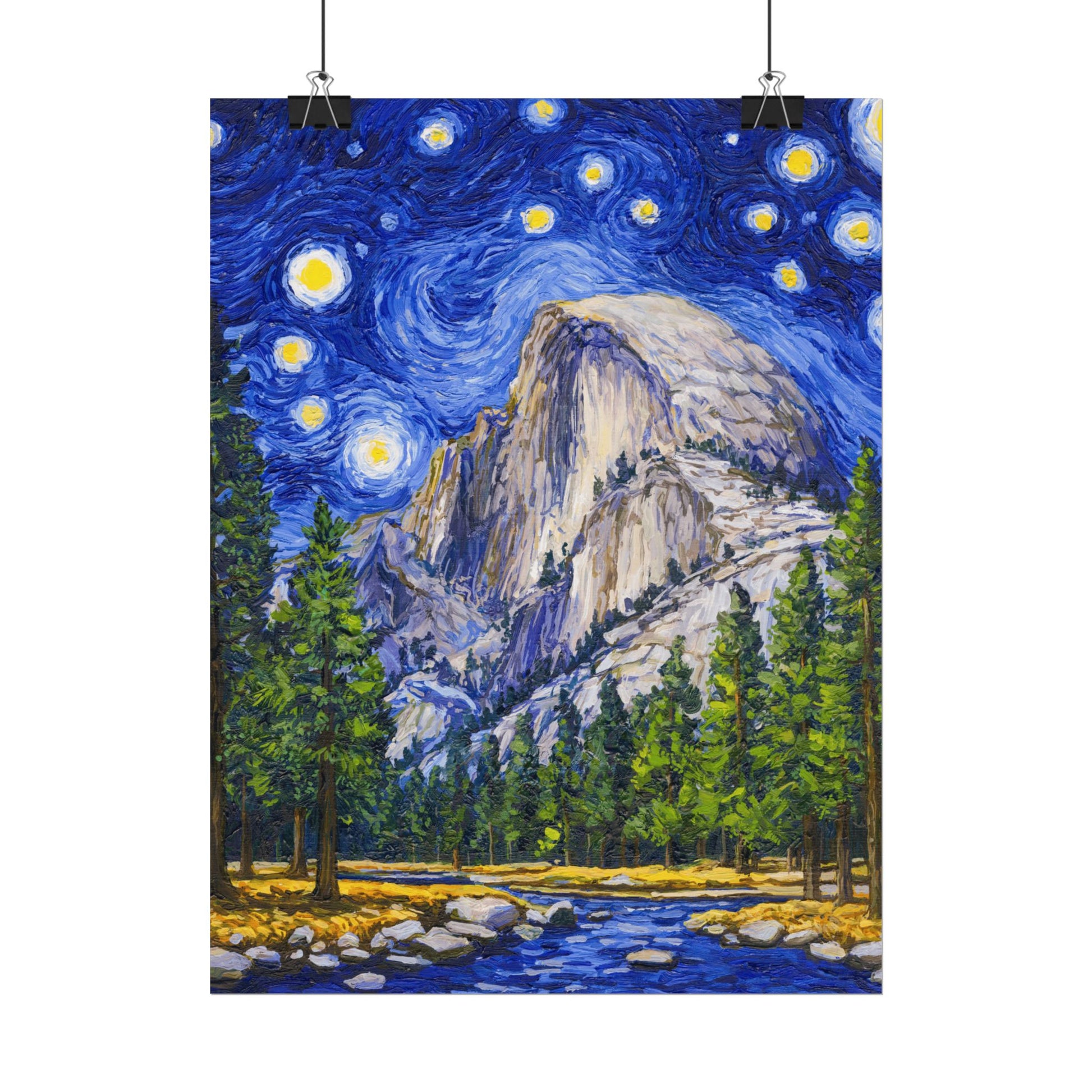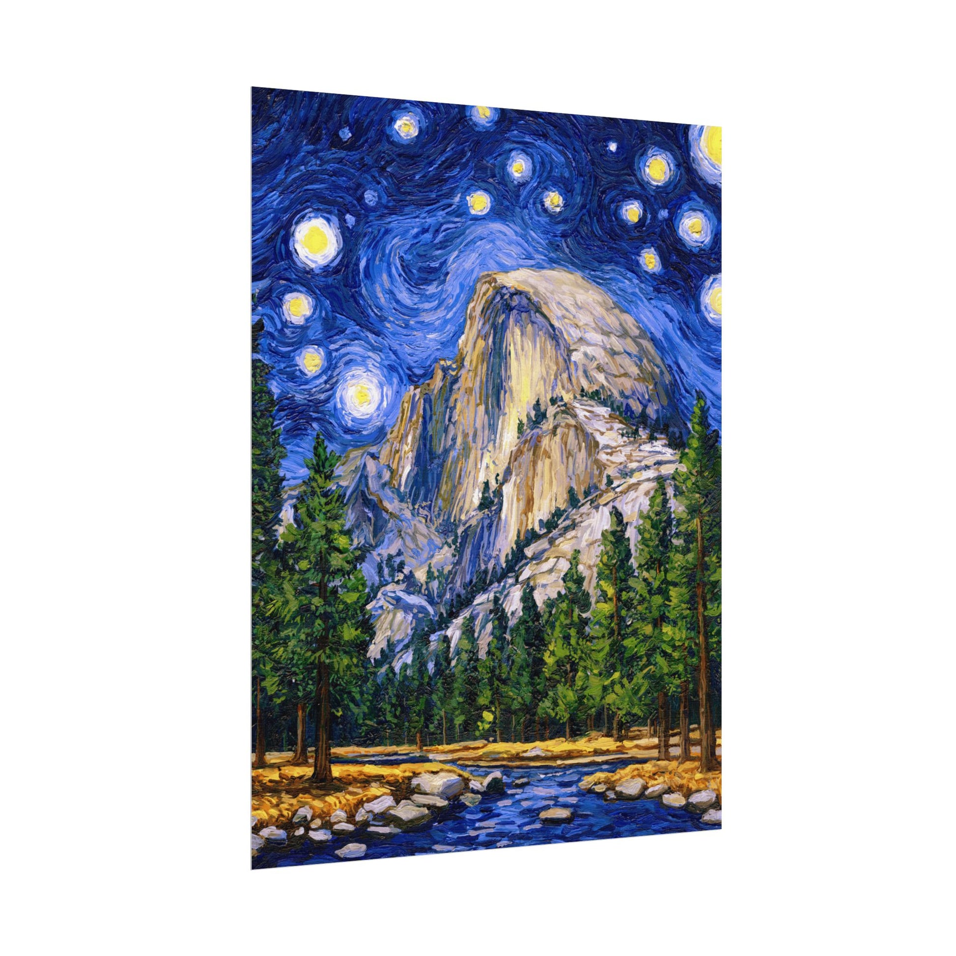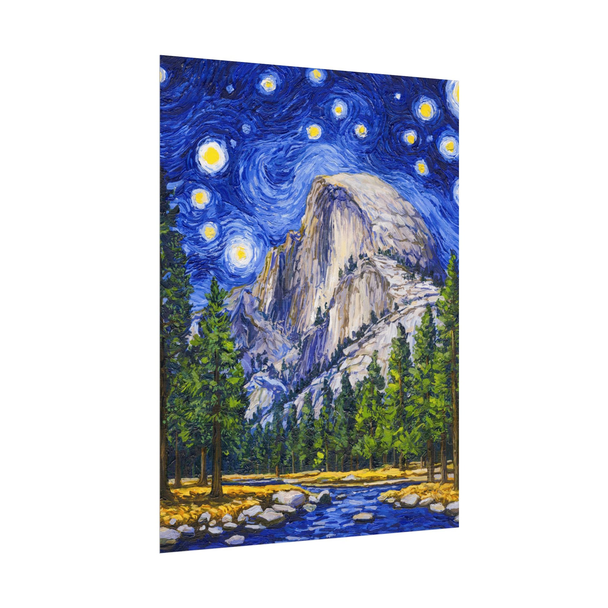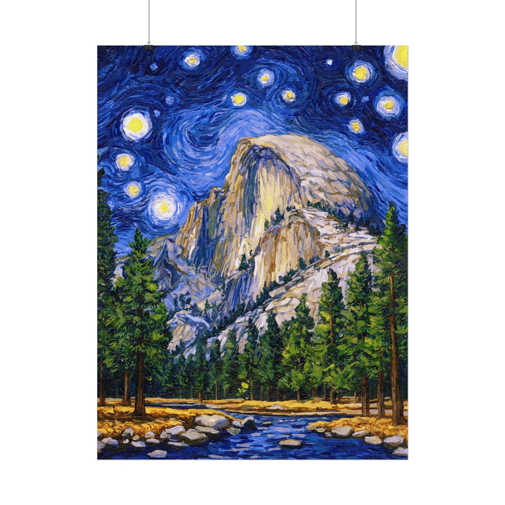 This Yosemite National Park Poster has to be seen to be believed! We took the highest resolution scans of our hand-painted Starry Night Yosemite National Park painting and printed it on incredible 285gsm textured paper. When combined with the archival inks, the finished product is almost indistinguishable from the original painting. This is the ultimate version of our Starry Night series.