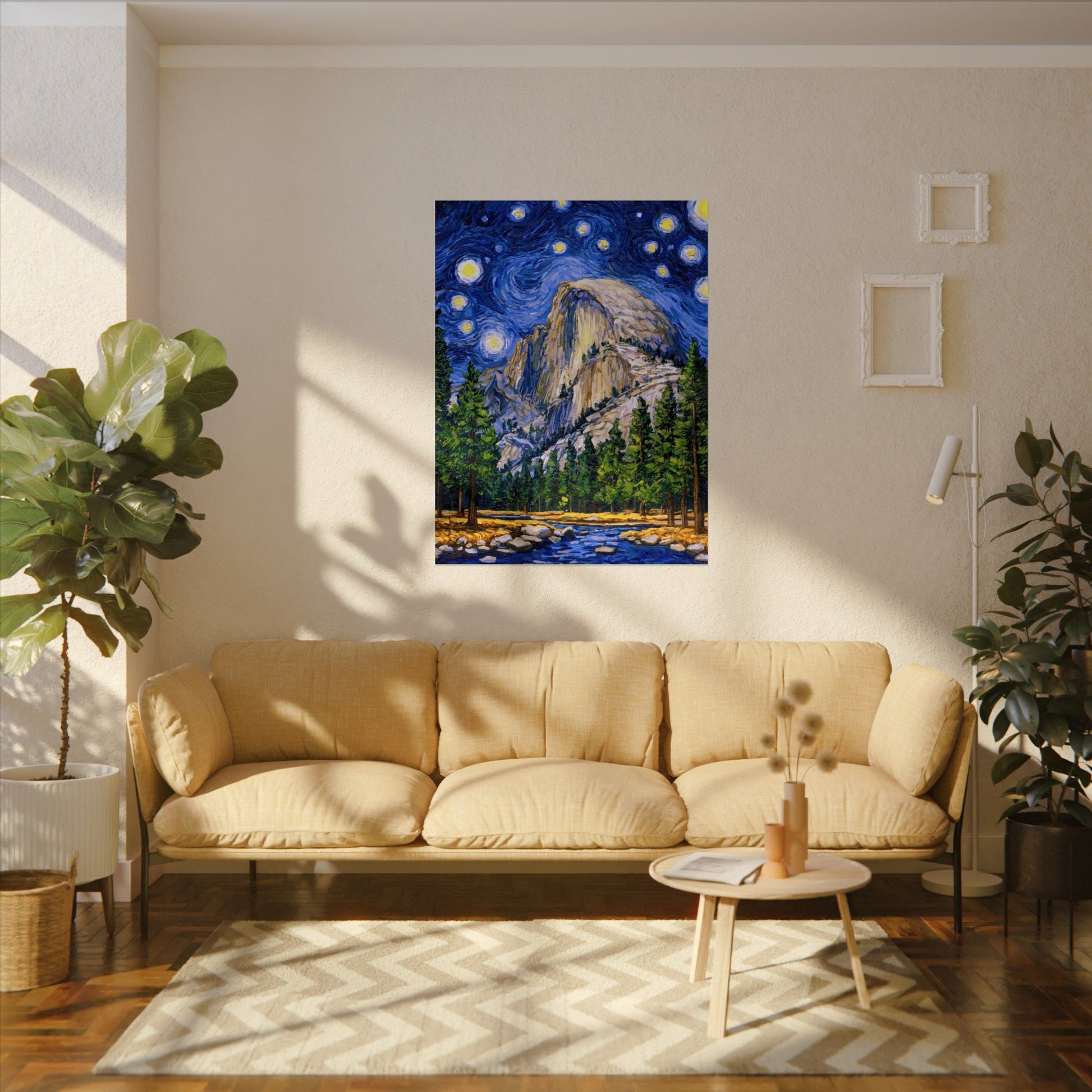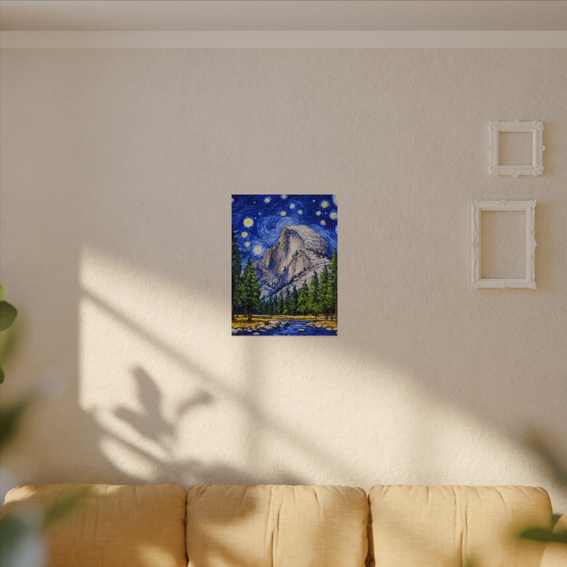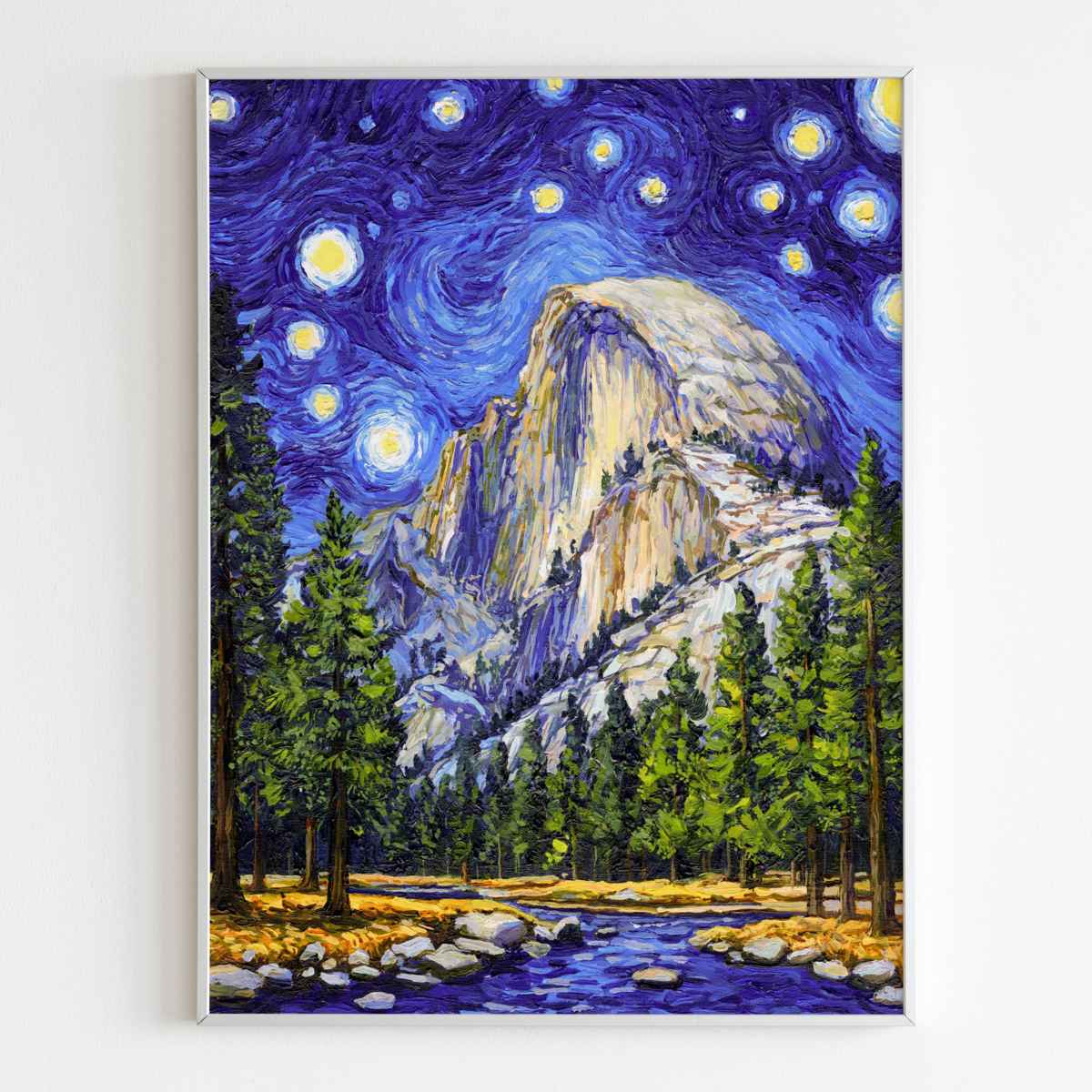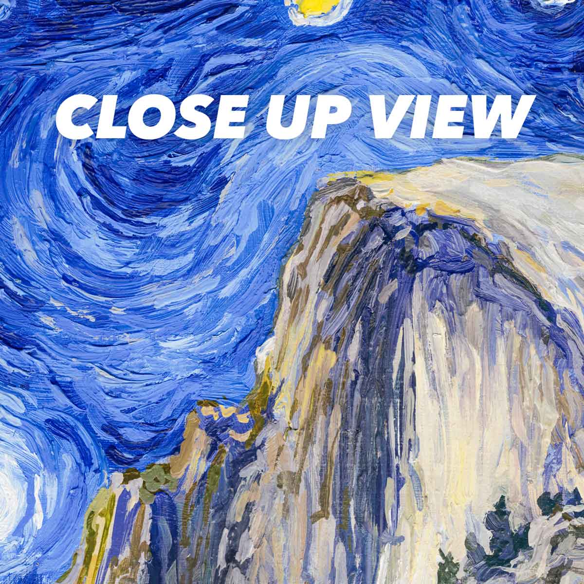 This Yosemite National Park Poster has to be seen to be believed! We took the highest resolution scans of our hand-painted Starry Night Yosemite National Park painting and printed it on incredible 285gsm textured paper. When combined with the archival inks, the finished product is almost indistinguishable from the original painting. This is the ultimate version of our Starry Night series.