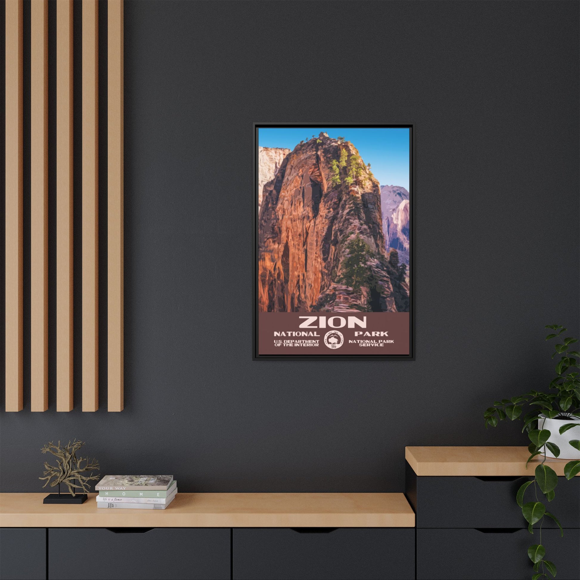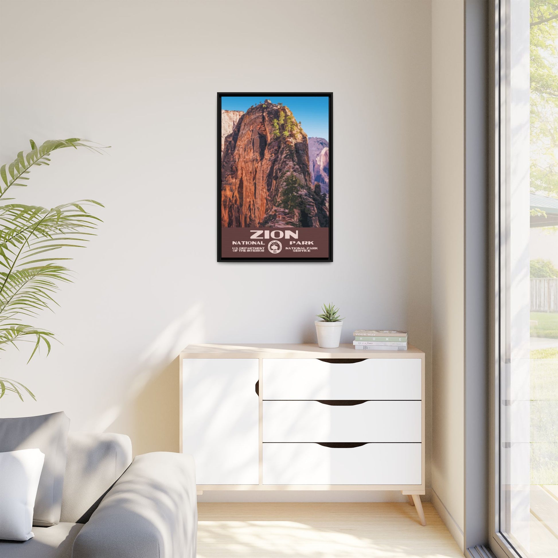 This Zion National Park framed canvas makes a stunning statement in any room. The design is inspired by the WPA National Park Posters of the 1930s. This design is exclusive to National Parks Collective, so you won't find it anywhere else!