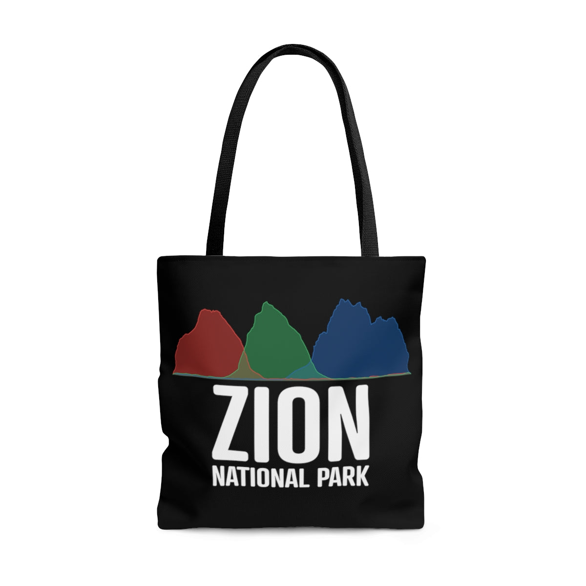 Whether you are going on your next cross-country road trip or just heading to the grocery store, this Zion National Park tote bag is the perfect companion! The design is based on the histograms photographers use to properly expose their pictures, but reimagined as the shape of The Three Patriarchs rock formations.
